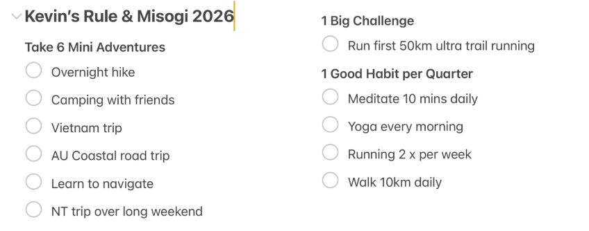A misogi is one big, personal challenge that feels just out of reach. Not dangerous or reckless but big enough that you’ll need to train, prepare, and show up differently. Good misogi examples: