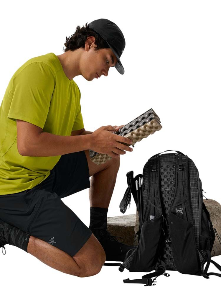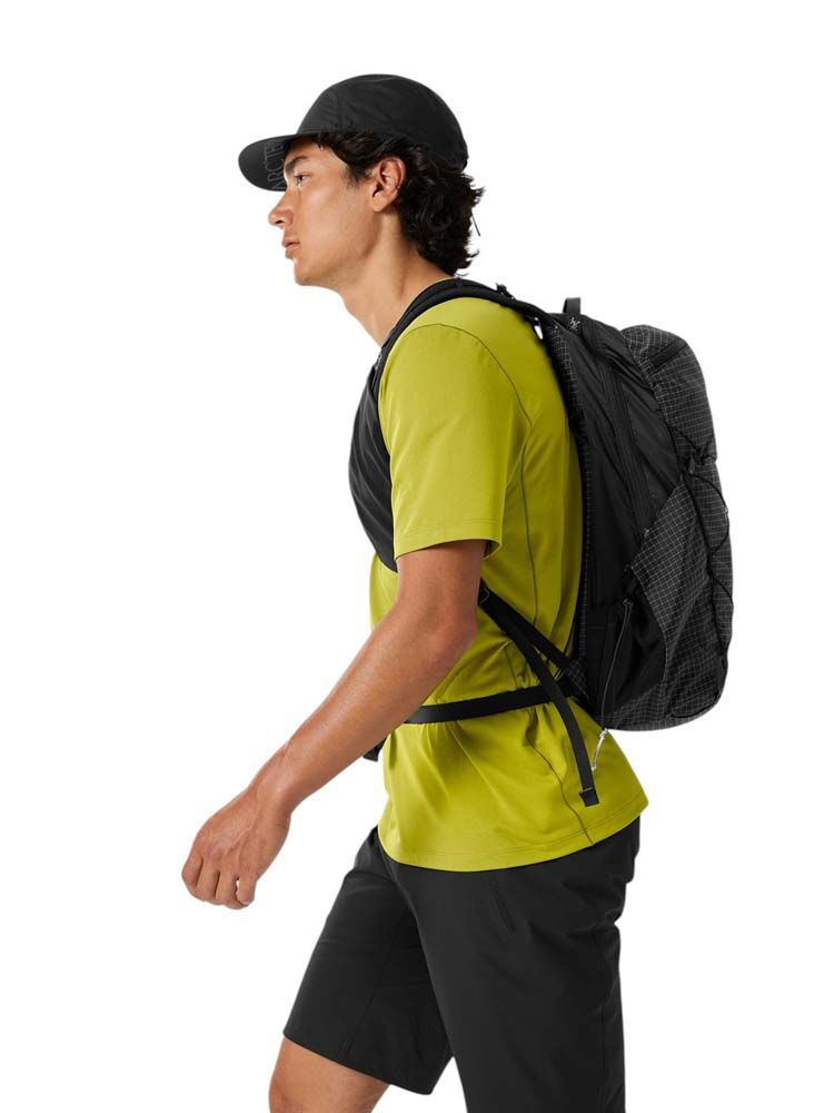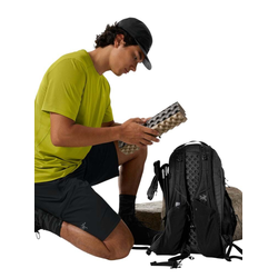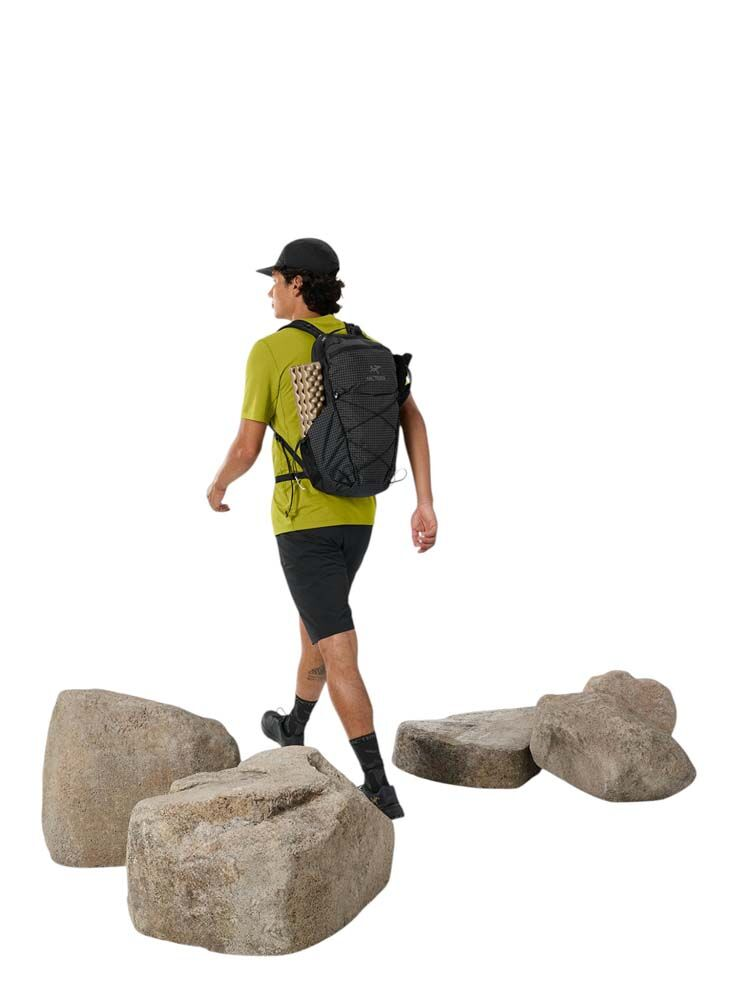 Ultralight and durable 18L daypack with a customizable fit. The Aerios 18 Backpack has a patent-pending interchangeable harness system that allows you to finetune your fit before you start your hike, so you won't spend every step thinking about your pack. The ultralight, ultra-strong grid pack fabric sheds light rain and stands up to all the drops, drags, and snags a pack encounters on the trail. What's been updated: Updated with a FC0 DWR finish for a lower footprint.