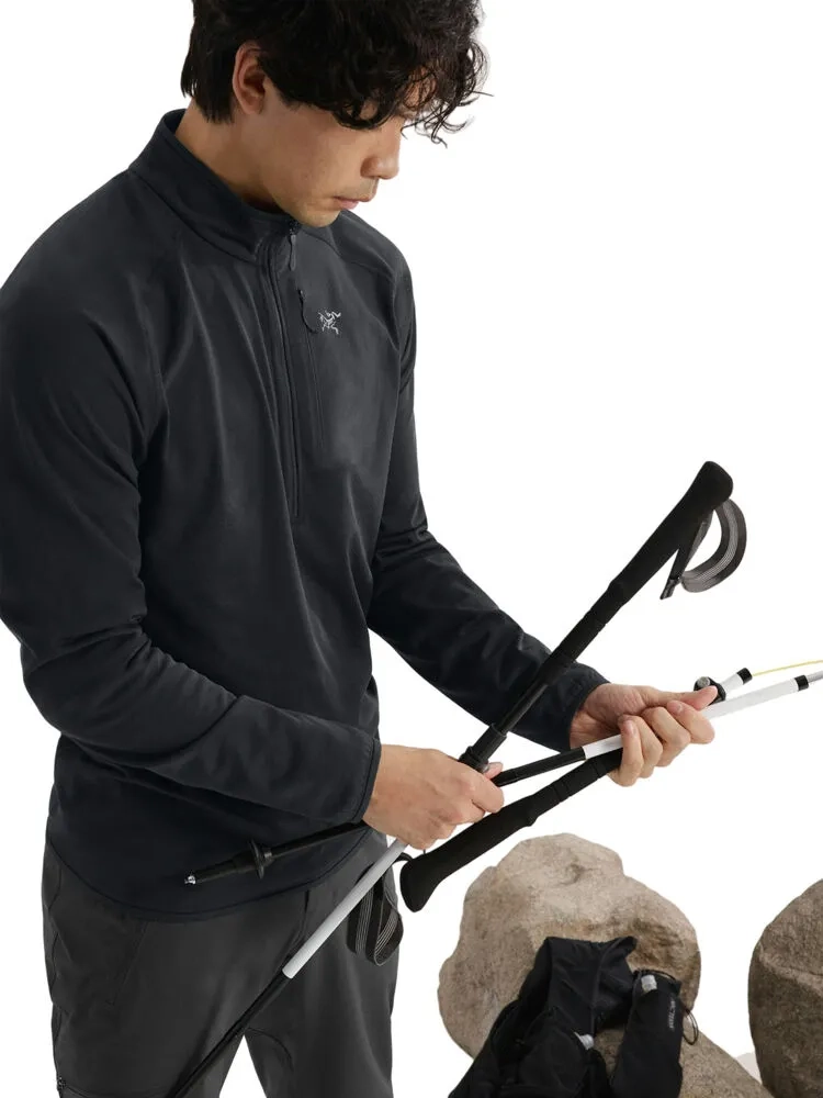 Our most technical fleece half-zip pullover delivers warmth for minimal weight. Created for comfort and performance across a range of activities and output levels, our most technical fleece zip-front pullover transcends cozy. Breathable, durable, and soft, the fleece's innovative hollow-core fibre construction provides superior warmth for its weight. The smooth face adds durability, and Phasic AR II panels under the arms add stretch and are made with wicking fibres. Patterned for ergonomic freedom and fit for easy layering, the Delta also shines as a standalone. Size and fit tip: The Deltas offer a roomier fit in the body and sleeves than their predecessors, for improved comfort, versatility, and freedom of movement during high-output activities.