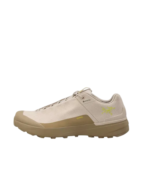 Waterproof low-collar hiking shoe for fast and light travel on shifting terrain. Fast, light, agile, and secure - the Kopec GTX is made for day hikes and multiday trips. Its PFAS-free GORE-TEX protection seals out water and snow. The CORDURA mesh upper is durable and light, and the wide toe box gives you room to splay. Cushioning and support come from the dual-density midsole, high-wear zones are reinforced, and the Vibram Megagrip outsole and custom lug pattern deliver a secure grip on dirt, mud, and rocky terrain. Product tip: This shoe is designed for a Comfort Fit, giving you the most space at the toe and a less snug fit around the foot.