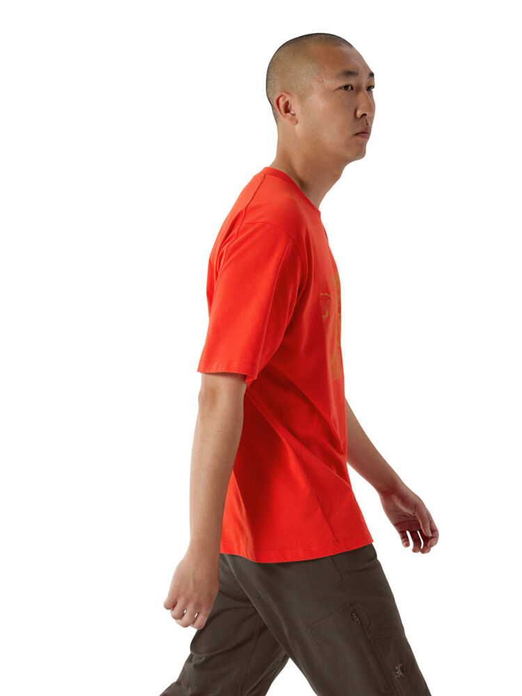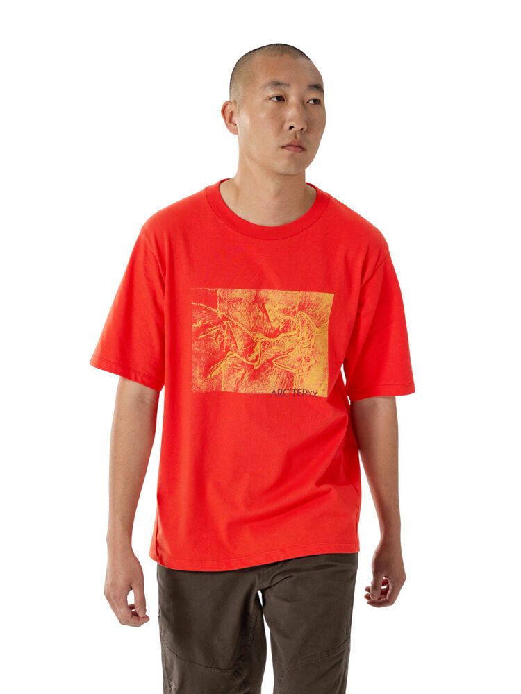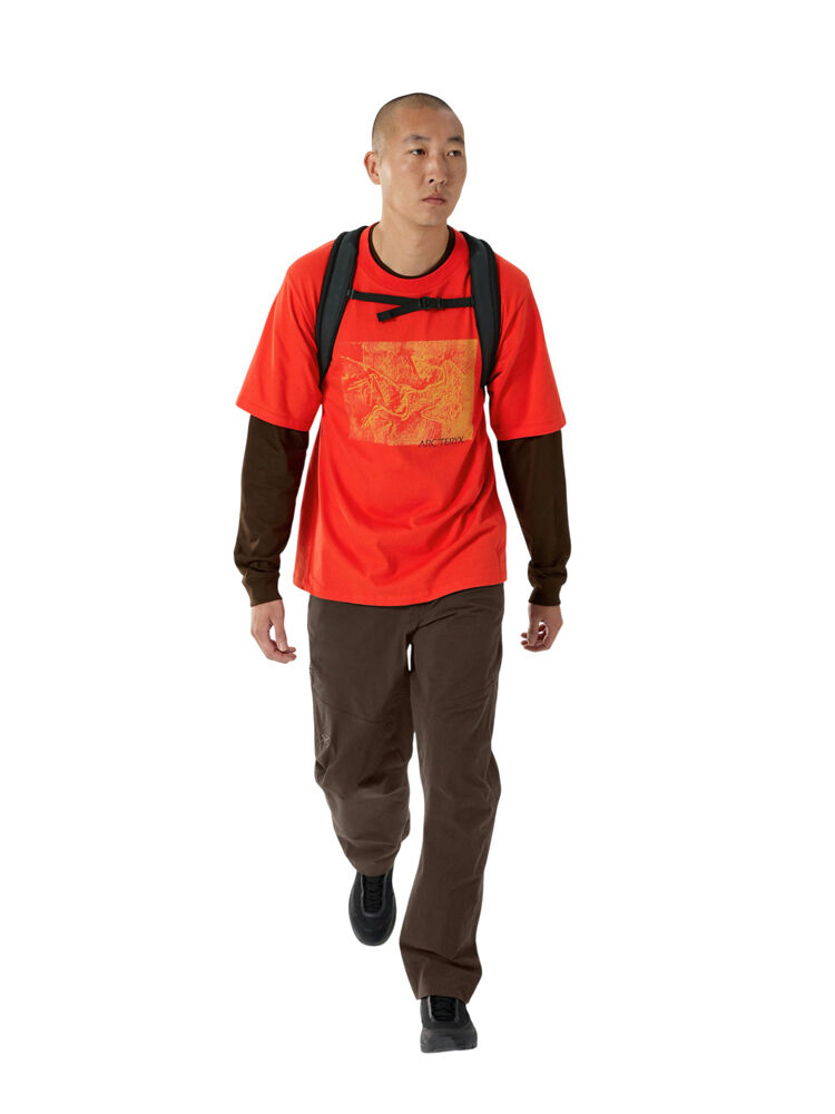 Relaxed-fit cotton shirt, patterned for climbing-specific mobility. The Kragg Cotton Lithographica Shirt SS moves with quiet confidence on and off the rock. Made from soft, breathable heavyweight cotton, this tee features a relaxed fit and a lithographica design that channels the essence of progression. A rib-knit collar holds its shape, while gusseted underarms free you up to pull down overhead. And with backward-shifted shoulder seams, this shirt stays comfortable under a pack, whether you're charging to the crag or just making moves throughout your day.