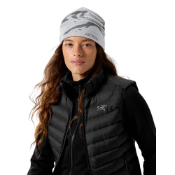 Warm, versatile 100% recycled polyester toque performs on and off the mountain. Versatile, warm, and soft - and designed with a look that moves easily from urban to alpine - this mid-length winter toque is made from 100% recycled polyester and features a colorful, abstract Arc'teryx bird logo.
