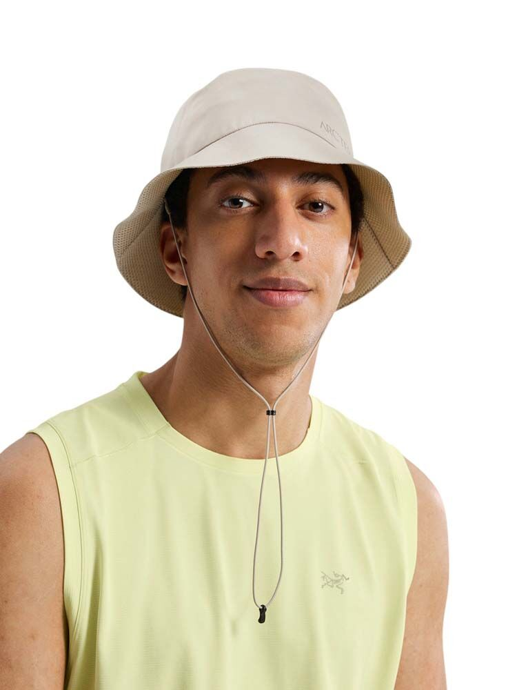 Lightweight bucket hat for shade on windy hikes and exposed ascents. The Sinsolo Bucket Hat helps you stay cool and covered when there's no shade in sight - and the built-in chin strap keeps it from flying away in the wind. The lightweight, stretchy fabric also has a durable water repellent finish, providing some shelter from unexpected showers, too. What's been updated: Updated with FC0 material for a lower footprint.