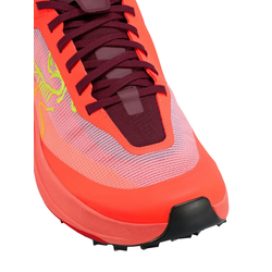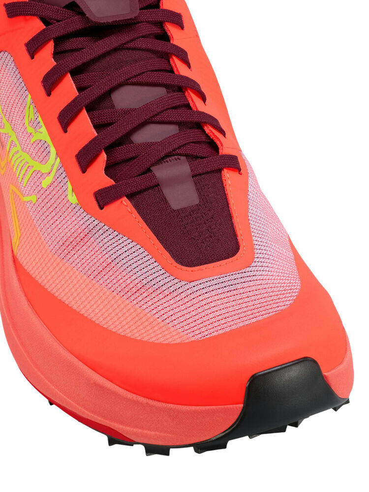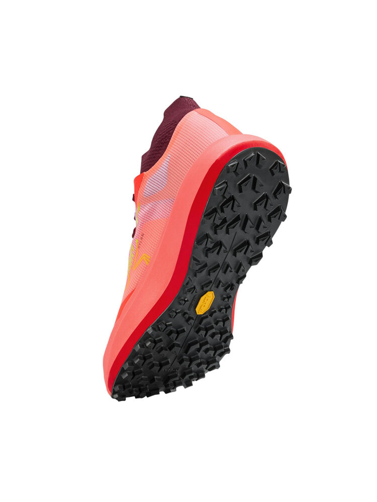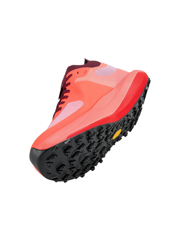 Breathable, comfortable mountain running shoe designed for maximizing speed. Athlete-inspired and built for speed, this is the shoe for mountain runners looking to move faster on technical trails. The midsole's rocker geometry drives propulsion and is made from InFuse, a light, highly responsive EVA and Polyolefin composition that provides rebound and absorbs shock. The grippy Vibram Megagrip outsole uses LITEBASE technology to shed weight without sacrificing performance, and aggressive lugs deliver a confident bite. The fit locks tight, and a knit collar seals out debris. Product tip: This shoe is designed for a Comfort Fit, giving you the most space at the toe and a less snug fit around the foot.