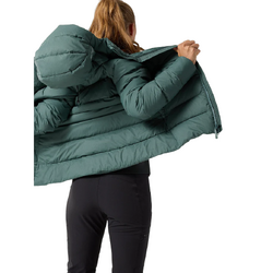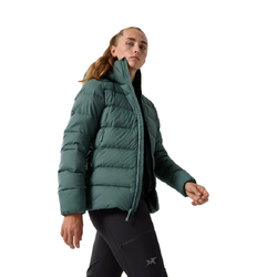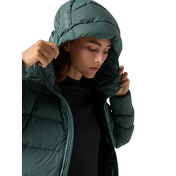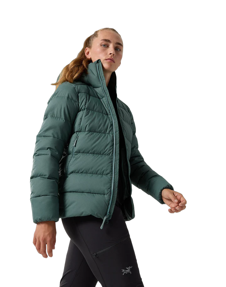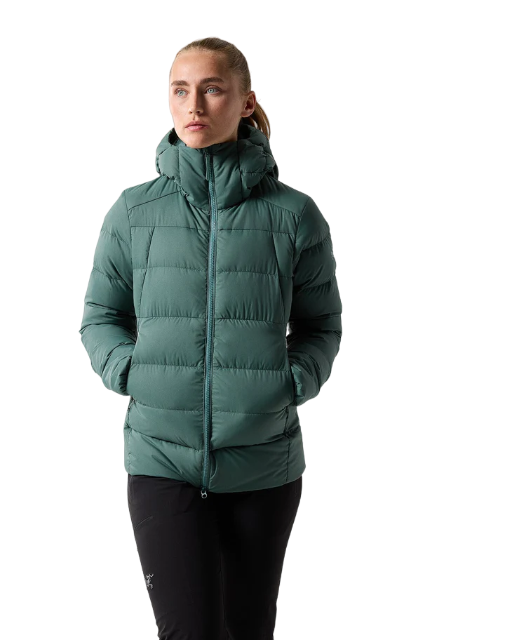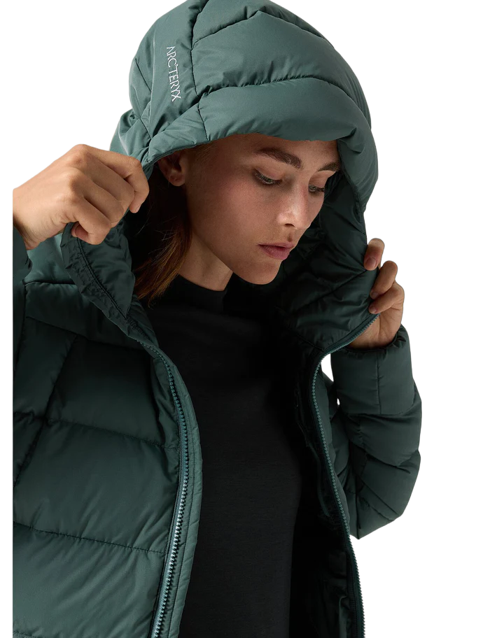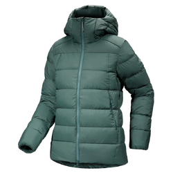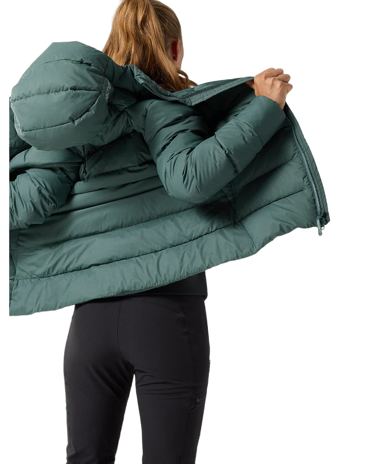 Warm, versatile, standalone hoody insulated with responsibly-sourced goose down. *The Thorium Hoody was previously the Thorium AR Hoody. A proven hoody for cold, dry conditions, the Thorium delivers serious warmth and handles a wide range of environments. Packed with 750 fill-power Responsible Down Standard certified grey goose down, it offers outstanding thermal performance for its weight. Down Composite Mapping strategically places Coreloft synthetic insulation in areas prone to moisture. The light, durable Arato 30 nylon shell has a DWR treatment for water repellency, the liner's bio-derived material reduces petroleum use, and the insulated adjustable hood fits over a helmet.