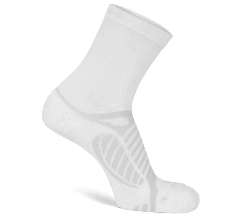 Balega's Ultralight Crew socks combine ultrafine hi-tech performance yarns with a protection-based design to create the sheerest, lightest performance crew running sock. Engineered with Drynamix moisture management technology, these socks will keep your feet cool and dry, while allowing free airflow for maximum comfort, performance, and durability. Ultralight Crew socks are constructed with ultrafine hi-tech performance yarns and feature a protection-based design to create the sheerest, lightest performance crew running sock. Engineered with Drynamix moisture management technology, the socks will keep your feet cool and dry, while allowing free airflow for maximum comfort, performance, and durability. The hand crafted, high performance Ultralight Crew socks are lightweight and thinner than most other running socks to provide a true minimalist feel. Race-tested and incorporating a hand-linked seamless toe to eliminate abrasion across the top of the foot, these socks provide the ultimate comfort without adding bulk to your shoe. An extra deep heel pocket ensures the sock fits your foot perfectly and won't slide down during activity.