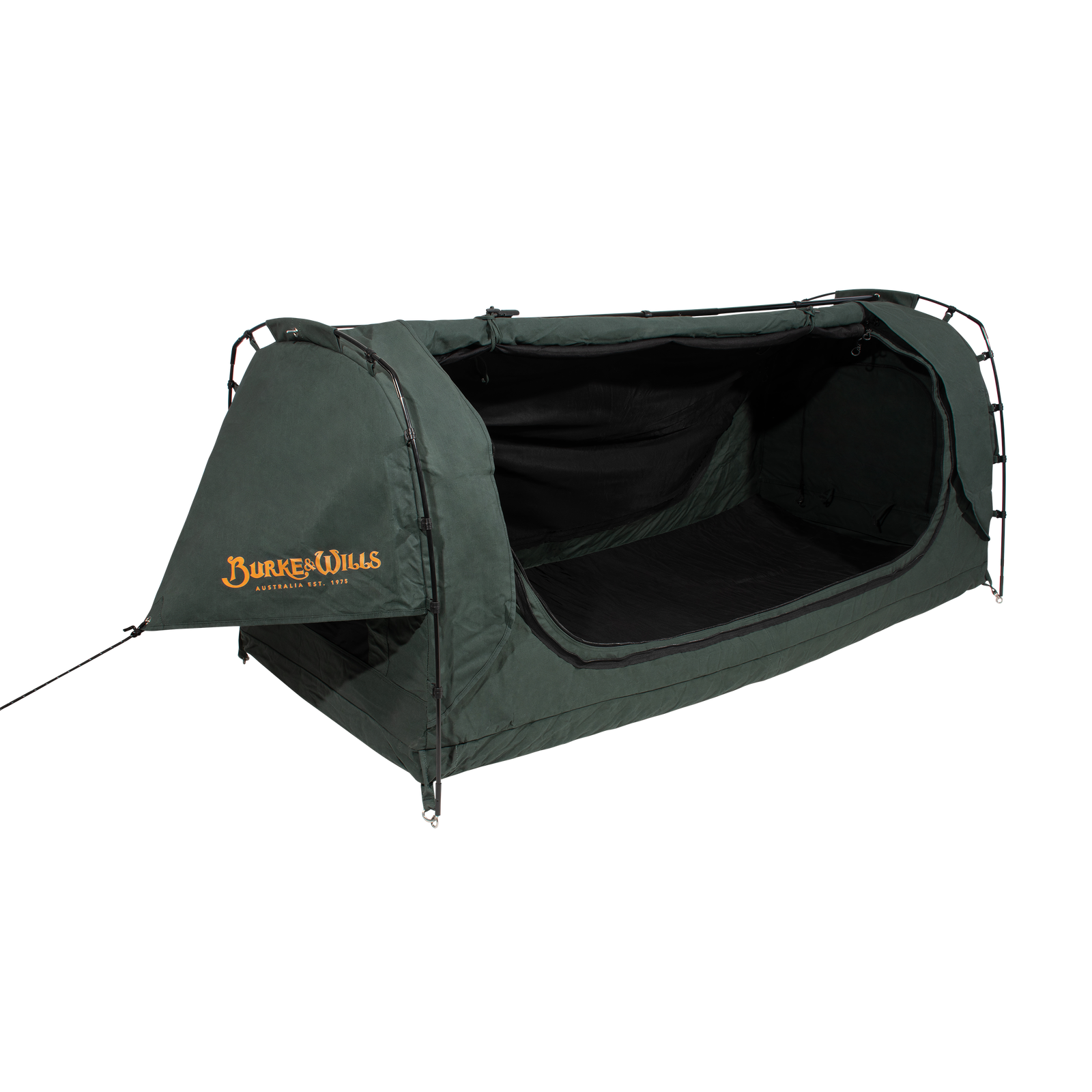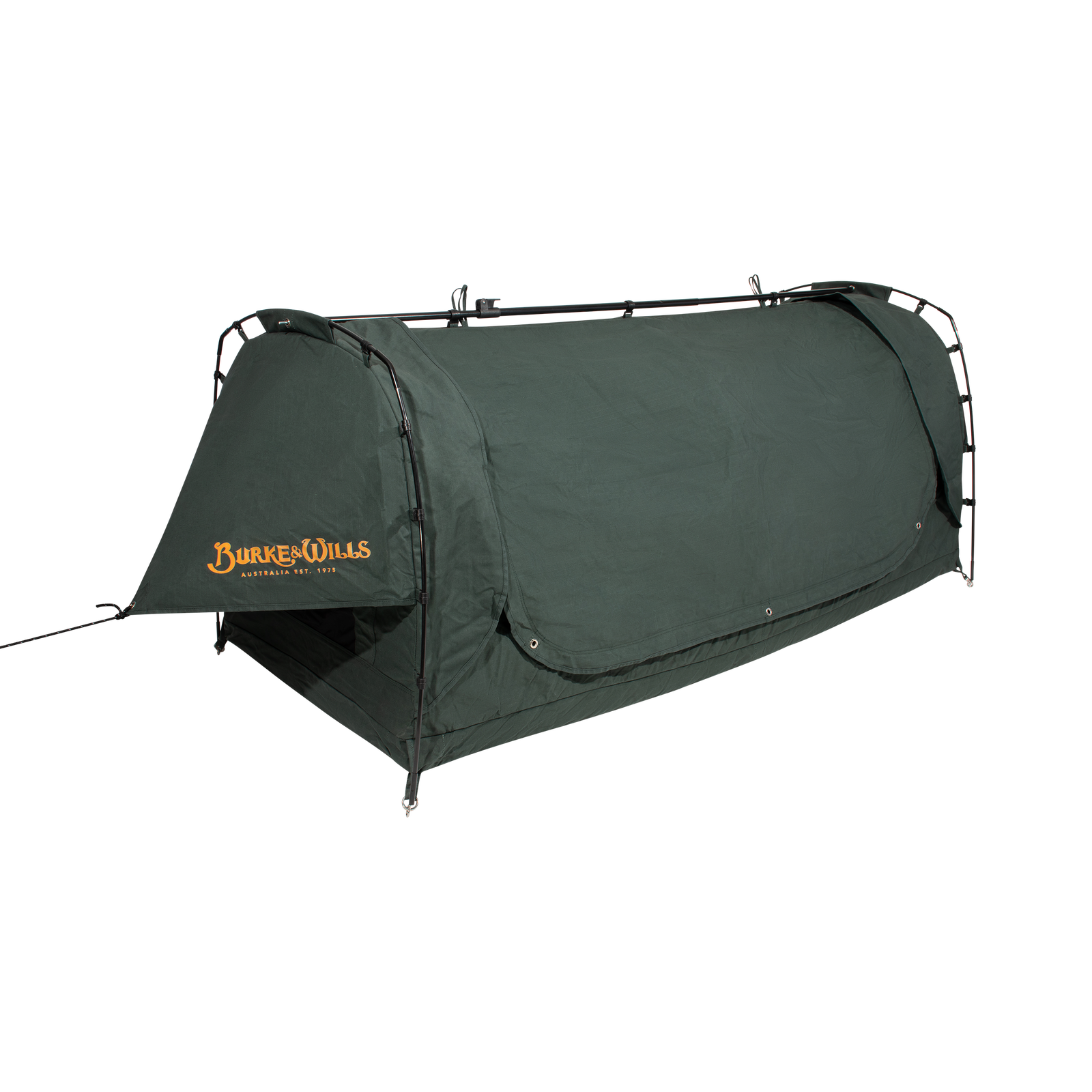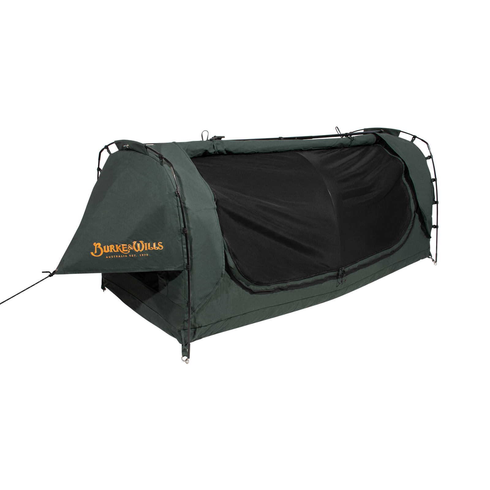 Burke & Wills swags feature our very own and original Australian designed STORMGUARD canvas. This heavy duty and durable 15oz cotton/polyester canvas has been constructed using a tight and tough grid shaped ripstop weave. Our advanced and technically treated canvas is waterproof as well as mould and decay resistant. It provides for superior breathability and airflow keeping you protected and comfortable in all weather conditions.