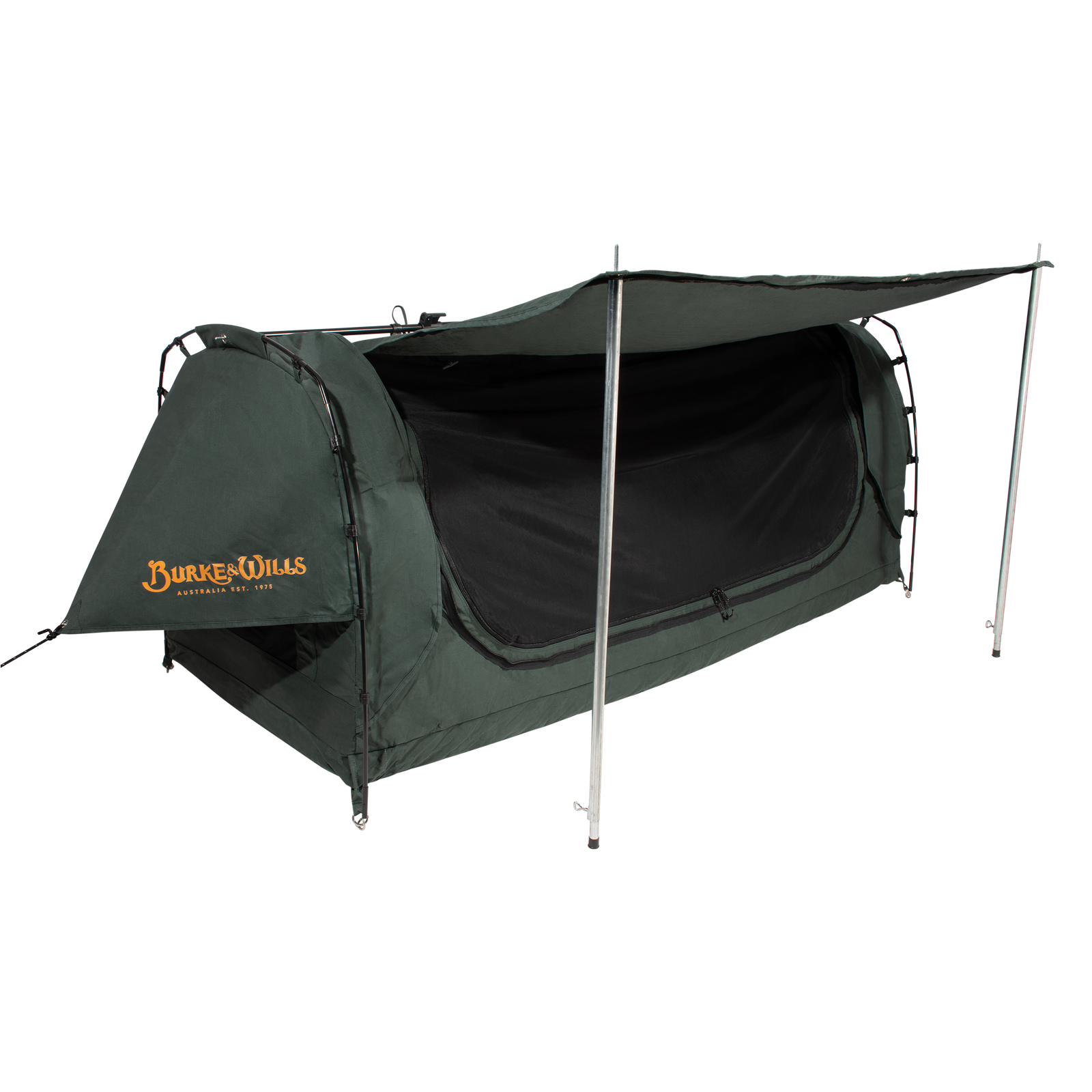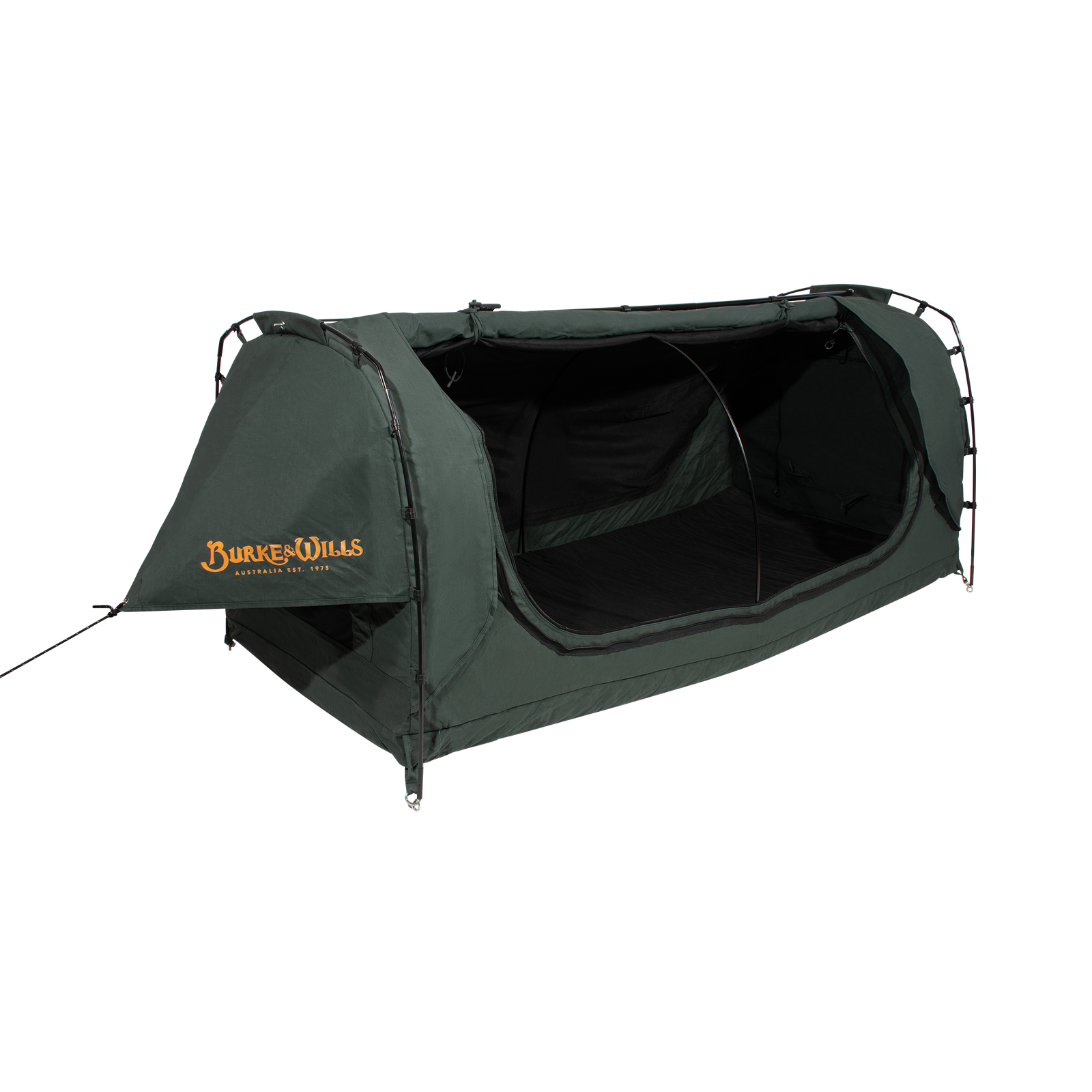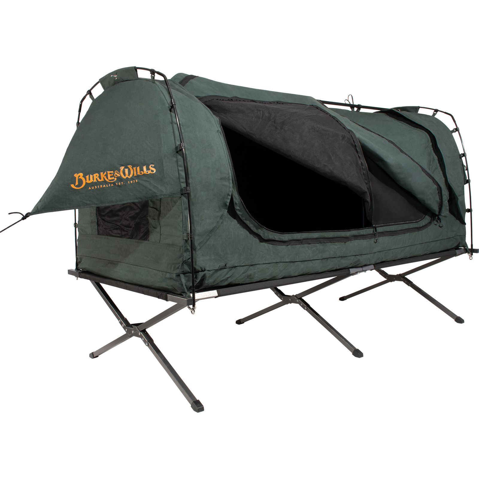 Burke & Wills swags feature our very own and original Australian designed STORMGUARD canvas. This heavy duty and durable 15oz cotton/polyester canvas has been constructed using a tight and tough grid shaped ripstop weave. Our advanced and technically treated canvas is waterproof as well as mould and decay resistant. It provides for superior breathability and airflow keeping you protected and comfortable in all weather conditions.