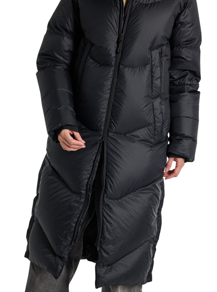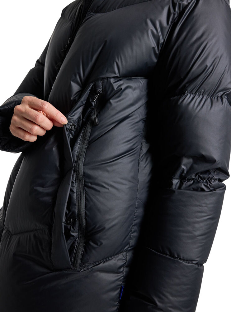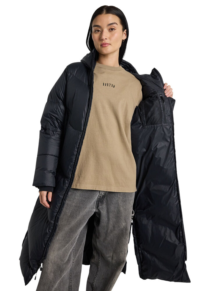 Insulated Winter Jacket. Down insulated, parka length, and a relaxed fit. There's warm, and then there's really warm. The women's Burton Long Down Parka is the kind of warm that keeps you cozy from head to toe when winter is at its coldest. It's designed with daily wear in mind with convenient pockets inside and out, plus side seams that you can open up for style or comfort reasons.