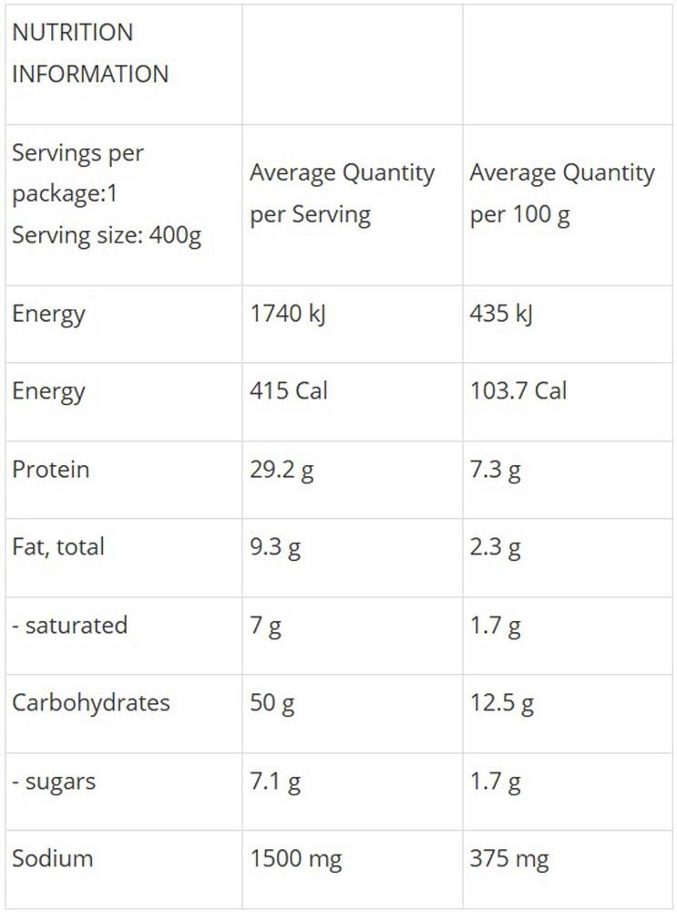 INGREDIENTS LIST: Chicken Breast (23%), Rice, [Coconut Milk (94%), Maltodextrin (from tapioca), milk protein], Onion, Green Peas, Green Beans, Carrot, Thai Green Curry Powder, Ginger Crushed, Fish Sauce, Chicken Stock Powder, Corn Flour, Oil, Garlic, Salt, Rosemary Extract.