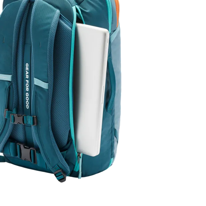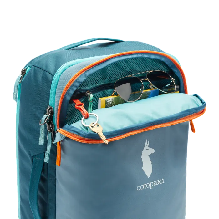 New features include air mesh shoulder straps for an ultra-comfortable carry, better weight distribution, an exterior stretch water bottle pocket, and a luggage pass-through strap that easily slides over the handle of a roller bag (like our Allpa Roller Bags). Most importantly, our Allpas are now made with 100% recycled fabrics.
