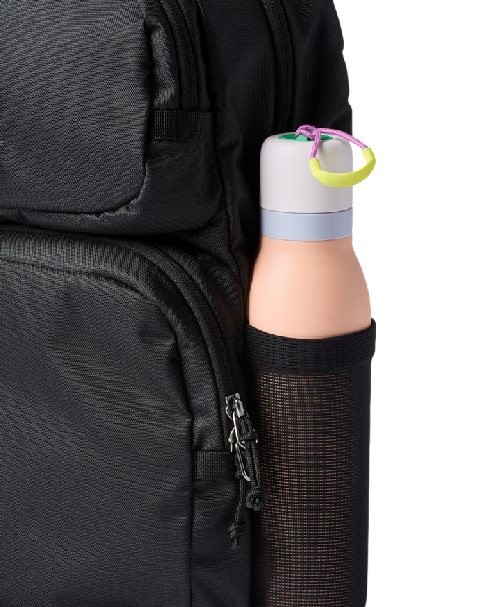 Built from recycled polyester, this compact travel backpack balances durability with a lightweight feel, making it a reliable option for everyday use and short-haul travel alike.