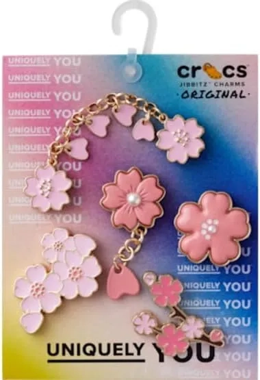 Add a touch of floral charm to your Crocs with the Blooming Cherry Blossom 5 Pack Jibbitzâ„¢ charms. These beautifully detailed accents bring a soft, playful vibe to your favorite clogs, slides, and more - perfect for expressing your unique style.