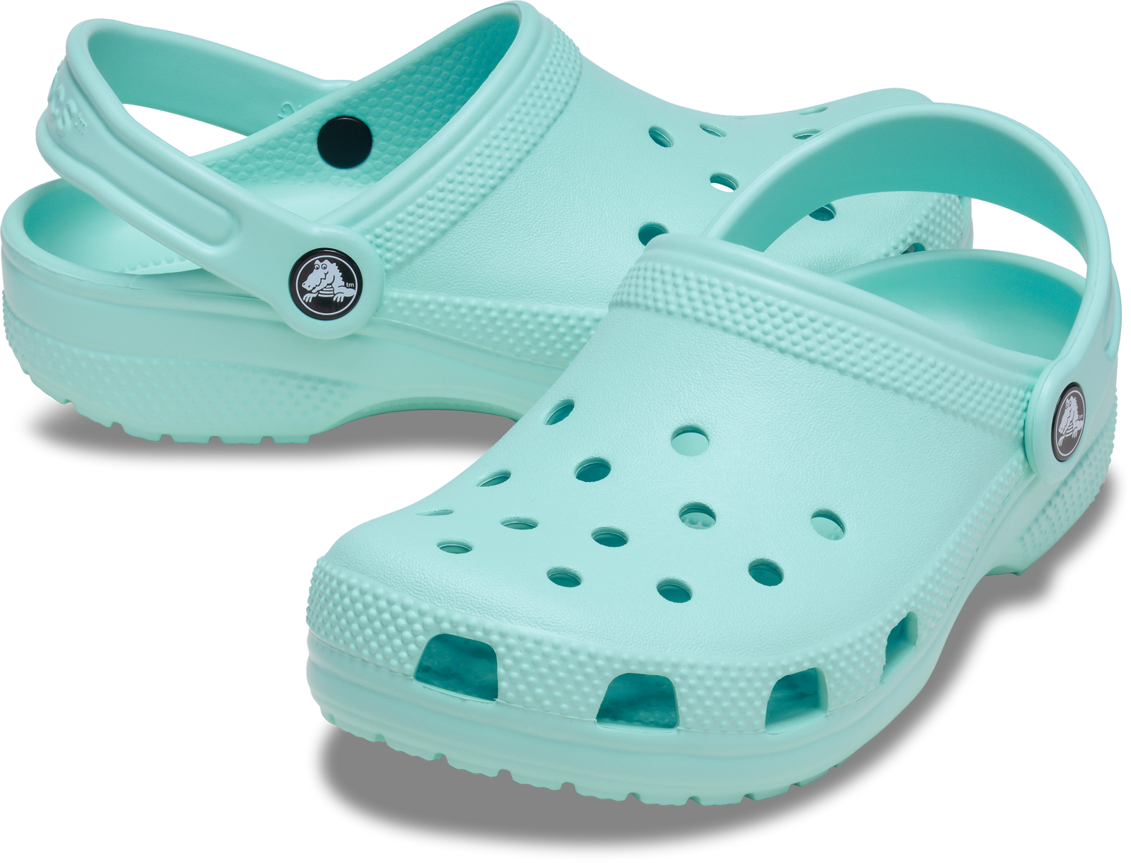 Original, versatile, and made for all-day play, the Crocs Classic Kids Clogs deliver the iconic comfort kids love in a bright Aquamarine colourway. Easy to slip on and off, these clogs are built with lightweight, durable Croslite™ material that cushions every step while standing up to busy days of adventure. Ventilation ports keep little feet cool and make room for Jibbitz™ charms, so kids can customise their Crocs to match their personality. From the playground to weekend outings, these clogs are a comfortable, fuss-free favourite.