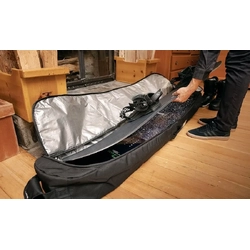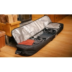 The Low Roller is the bag of choice for everything from a weekend trip at a nearby mountain, to a week-long dream trip epic. With 360-degree padding, it comfortably holds one board (or two boards with bindings removed), outerwear, and a removable boot bag in the main compartment. The exterior zippered accessory pocket stows essential items close at hand, keeping your entire kit secure and in one place. The handle pairs with a rolling luggage bag, for easy one-handed towing, while heavy-duty urethane wheels glide easily through airport terminals and parking lots.