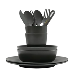 Enjoy your campsite meals and be even closer to nature with the Eco-friendly bamboo dinner set. The bamboos beautiful texture and smoothness brings a little luxury to the outdoors wherever you eat. Dishwasher safe, durable and light. The dinner set of 12 is a must on any getway.