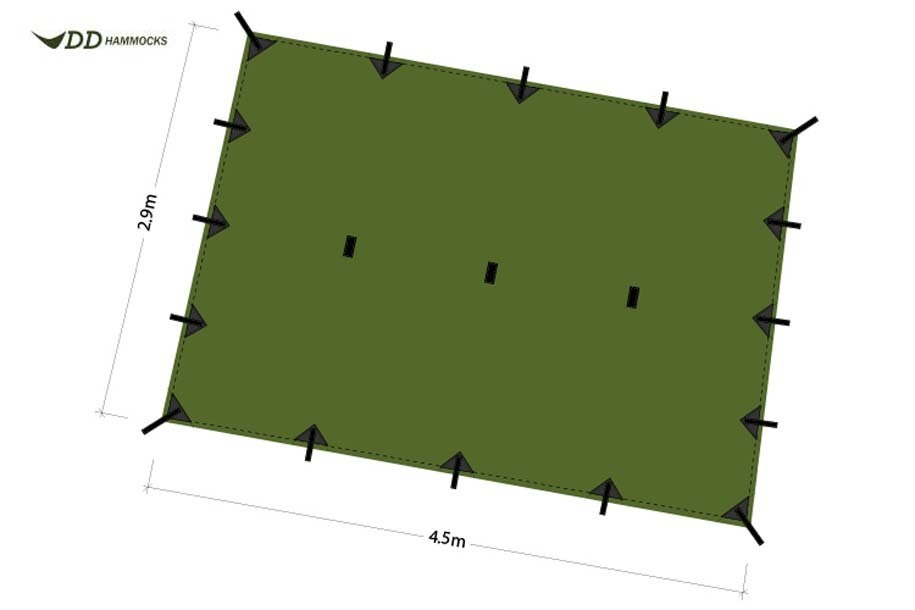 19 reinforced attachment points allow for a variety of setup options, from a hammock cover to an open or closed ground shelter. Ideal for lightweight backpacking or adventure sports like cycling, climbing or trail running, the DD SuperLight - Tarp XL will keep you dry on rest stops while keeping your pack weight to an absolute minimum.