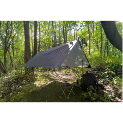 This tarp is smaller in area, though offers no less weather and water protection than what you would normally expect from a DD Tarp. The material is fully PU coated to a waterproof rating of 3,000mm, and strong seam-taping gives extra piece of mind when rain is on the horizon. The DD Tarp 2x2 is also rated for UV50+ protection for full cross-climate shelter.