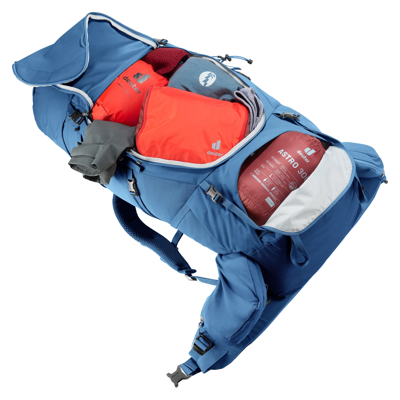 Access is just as practical as the carry system. A large U-shaped front zip allows quick entry to the main compartment, while multiple pockets and a separate bottom section keep gear organised across multi-day adventures. With hydration compatibility, trekking pole attachment, and a built-in rain cover, this trekking backpack is ready when conditions turn technical.