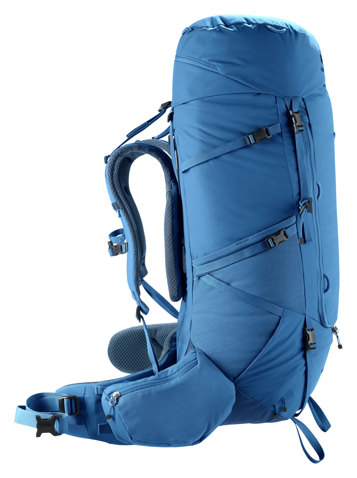 The VariClick system and adjustable stabiliser strap positions allow you to fine-tune the fit to your back length, helping the pack move naturally with your body. Deuter’s ActiveBalance shoulder straps and VariFlex hip fins work together to distribute weight efficiently, reducing fatigue on long climbs and uneven terrain. The stabilising aluminium Y-frame improves load transfer while breathable Air Spacer mesh promotes airflow during high-output days.