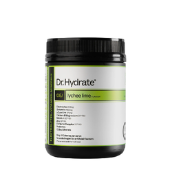 The Dr. Hydrate Electrolyte Hydration Drink in Lychee Lime delivers a refreshing citrus twist with no added sugar, artificial flavours, or colours. This performance-focused formula combines electrolytes, vitamins, minerals, probiotics, and more - developed alongside elite athletes and scientists to power your training, enhance recovery, and support energy levels.