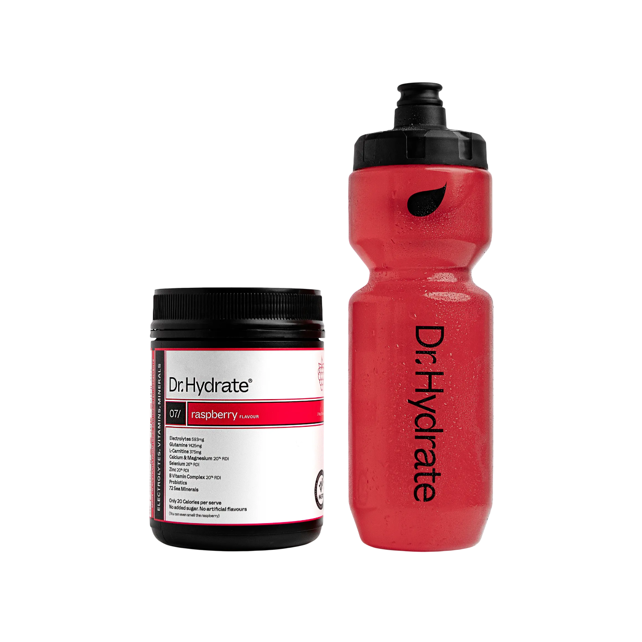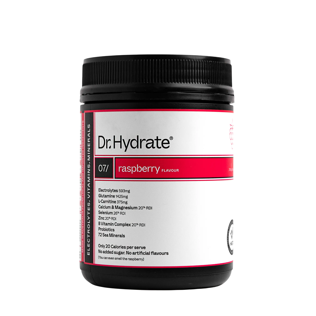 Stay fuelled, hydrated, and ready to move with the Dr. Hydrate Electrolyte Hydration Drink in naturally refreshing Raspberry. Crafted with a precise blend of electrolytes, essential vitamins, minerals, probiotics, and more, this high-performance formula supports endurance, recovery, and all-day hydration - without any added sugar or artificial flavours.