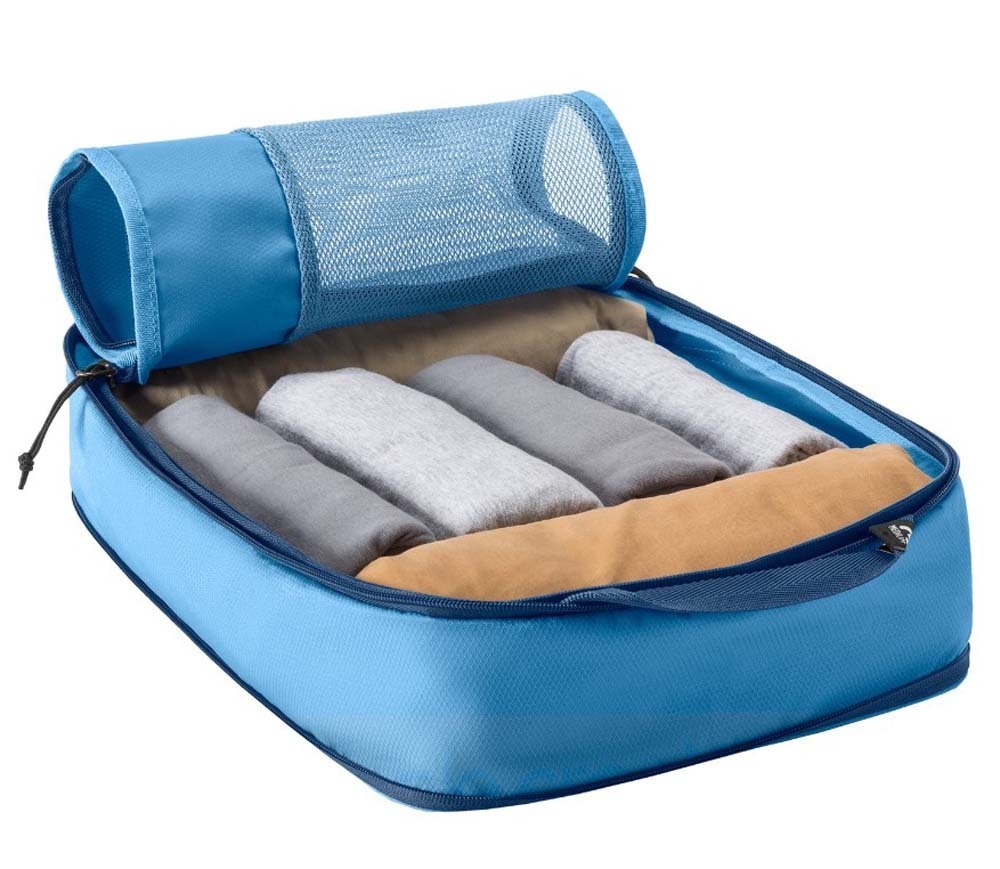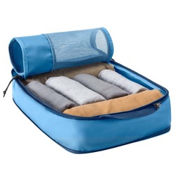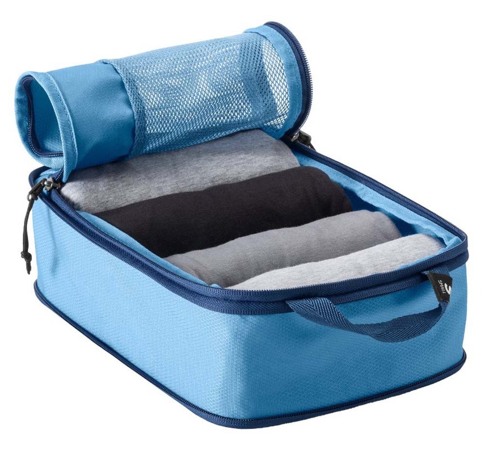 Stop rummaging for what you want. The mesh-topped organizers in the Pack-It Reveal Compression Cube S/M Set make it easy to spot rolled or folded clothing and accessories. This set's structured and compressible construction maximizes luggage space, and its 100% recycled fabrics are water-resistant.