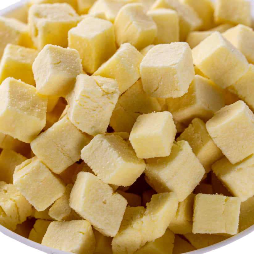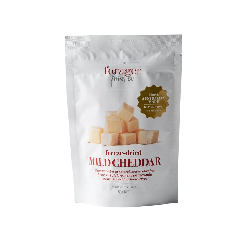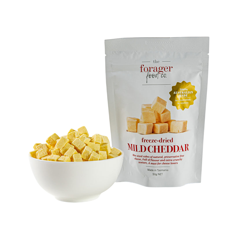 Enjoy the smooth, creamy flavour of cheddar anywhere with Forager Fruits Freeze Dried Mild Cheddar. Made from 100% real cheese, this diced cheddar is gently freeze dried to preserve its taste, shape, and colour, with a light, crunchy texture and rich, mellow flavour.