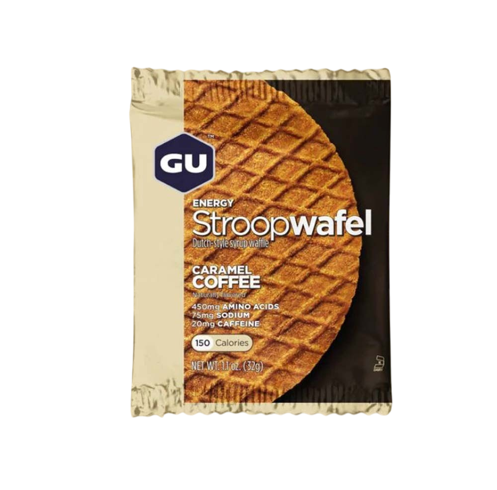 This caramel and coffee flavor tastes as smooth as it sounds. The bold coffee taste hits you up front and the oh-so-smooth sweetness of the caramel makes you fall in love with this caffeine-boosted Energy Stroopwafel flavor. The GU Energy Stroopwafel is a Dutch-style treat that acts like an Energy Gel but tastes like breakfast. Eat one before a race or workout or bring one along for a tasty energy source to power your performance. Here's what's inside: Carbohydrates (both complex and simple carbohydrates.) Sodium, the primary electrolyte lost in sweat that aids in hydration by maintaining fluid balance Branched-Chain Amino Acids (L-Leucine, L-Valine, and L-Isoleucine) which may reduce mental fatigue and decrease muscle damage while jump-starting recovery.