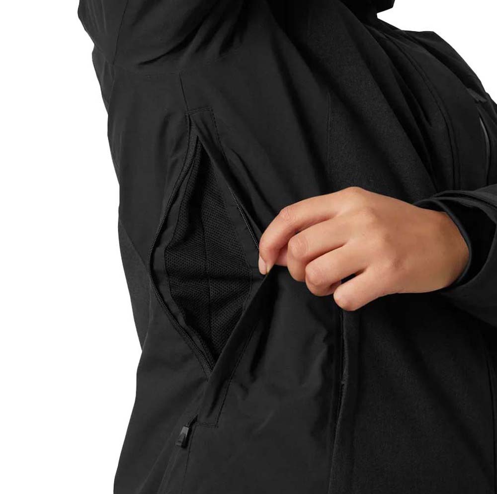 With its longer length, our Women's Snowplay Long Insulated Ski Jacket is great for both the slopes and everyday wear. Crafted with blown insulation and quick-drying recycled PrimaLoft insulation, it's built for warmth, while side ventilation zips offer breathability. Our HELLY TECH Performance technology ensures the jacket is waterproof and breathable. This ski jacket features RECCO reflectors for searchability, a high collar of extra warmth, an adjustable powderskirt, and a handy chest pocket with a waterproof zipper. Plus, the dual fabrics offer depth and texture for versatile use. This is a certified bluesign product.