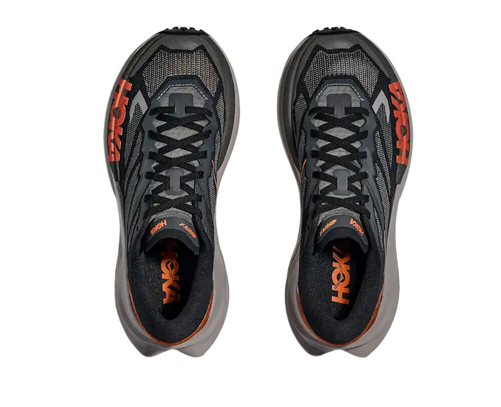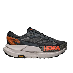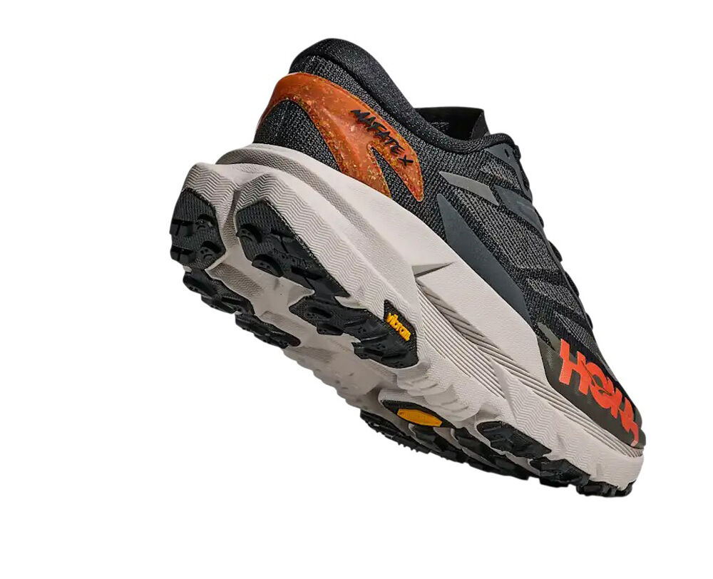 Peak plushness for tenacious trail efforts. Calling all trail racing fiends, gravel grinders, and 100-milers. There's a new trail titan in town. Built for long-haul efforts, the Mafate X delivers supreme plushness with a dual-density, premium foam chassis, PEBA top layer, and a pop of propulsion thanks to our forked carbon fiber plate. We've implemented an ultralight woven upper that allows for easy drainage and Vibram Megagrip outsole with pod-like cutouts to ensure a smooth ride over variable terrain.