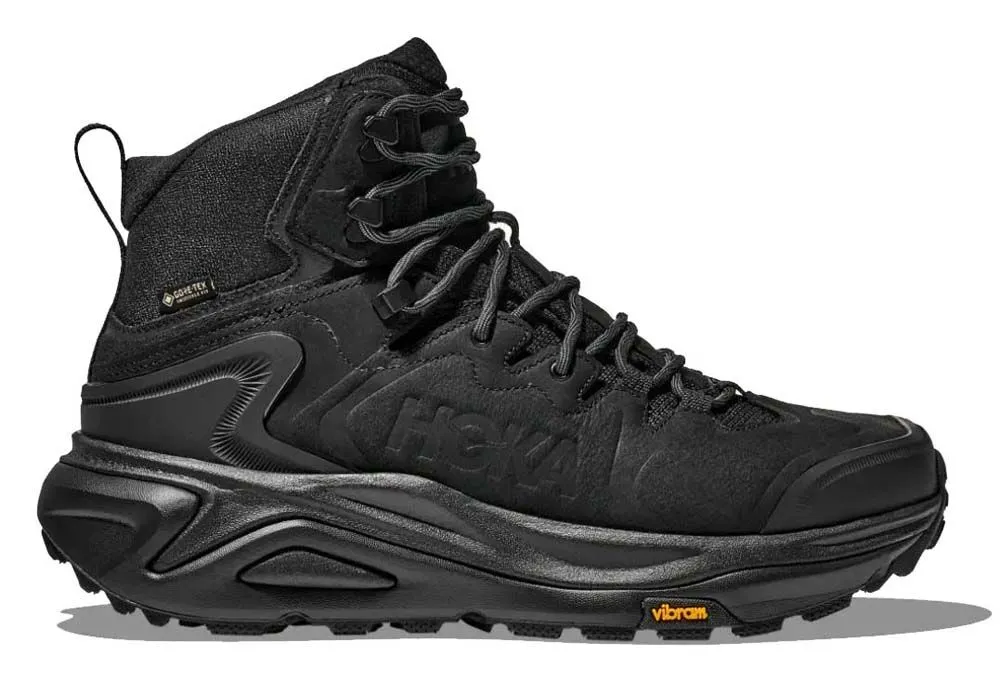 A long-haul adventure hiker that's cushier and more durable than ever before, the Kaha returns in a sleek new package. Geared for day hikes and multi-day adventures, our cushy sockliner combats foot fatigue while a dual density sugarcane EVA midsole provides a bit more bounce than its predecessor. HOKA's first-ever mid-cut hiker with GORE-TEX Invisible Fit, the Kaha 3 GTX features a durable toe cap, Achilles-friendly heel collar to mitigate pressure, and Vibram Megagrip outsole for toothy traction on lose terrain.