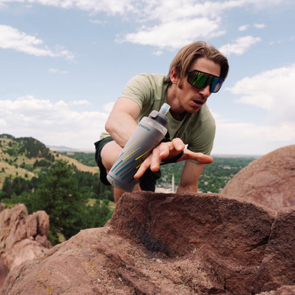 The minimalist handheld design features an innovative thumb loop that allows you to carry the flask securely without gripping or squeezing, reducing fatigue over distance. An adjustable sweatproof strap creates a comfortable, stable fit for most hand sizes and can be worn in either hand. Topped with a SpeedFill cap for quick refills on the move, the soft flask compresses as you drink to reduce sloshing and pack away easily once empty.