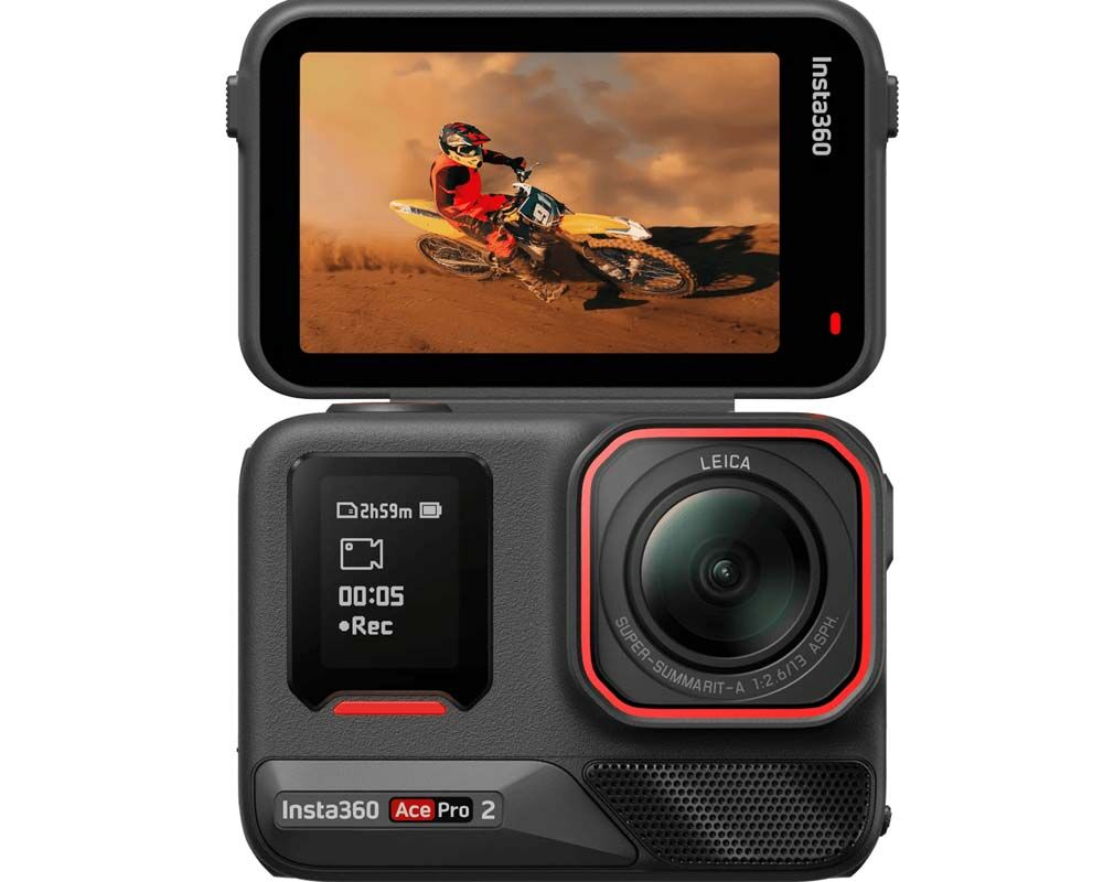 Capture all the action on the road, in the studio, or in the water with the Ace Pro 2 Action Camera from Insta360. This updated version of the compact, easy-to-use action camera still provides up to 8K photo and video capture in a tiny action camera body with a dual camera chip that can be mounted and carried anywhere when traveling, shooting action videos, or vlogging. The large 1/1.3" sensor allows you to capture up to 8K30 resolution and features an automatic HDR mode and superior low-light performance to capture vibrant, realistic color. The wide-angle lens was developed with world-class lensmaker Leica, allowing you to capture up to a 157ø field of view. Upgraded built-in microphones improve your audio capture, and an AI chip enhances your imaging power.