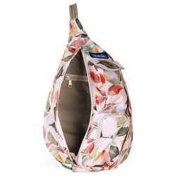 On the heels of the Rope Bag's smash success, our design crew created this beauty by using a Rope Bag blueprint reinforced with a durable and vibrant 600D poly fabric with water resistance. And, now it's packaged in a mini. Some love the patina of a well-worn canvas Rope Bag. Others can't resist the travel friendly properties of a water resistant poly Rope Sling. But, we can all rest assured that there is a KAVU bag for everyone. This polyester mini sling pack features an adjustable rope shoulder strap and side release buckle, two vertical zip compartments, two key or cell phone pockets, padded back with KAVU embroidery.