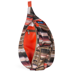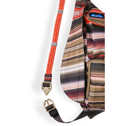 On the heels of the Rope Bag's smash success, our design crew created this beauty by using a Rope Bag blueprint reinforced with a durable and vibrant 600D poly fabric with water resistance. And, now it's packaged in a mini. Some love the patina of a well-worn canvas Rope Bag. Others can't resist the travel friendly properties of a water resistant poly Rope Sling. But, we can all rest assured that there is a KAVU bag for everyone. This polyester mini sling pack features an adjustable rope shoulder strap and side release buckle, two vertical zip compartments, two key or cell phone pockets, padded back with KAVU embroidery.