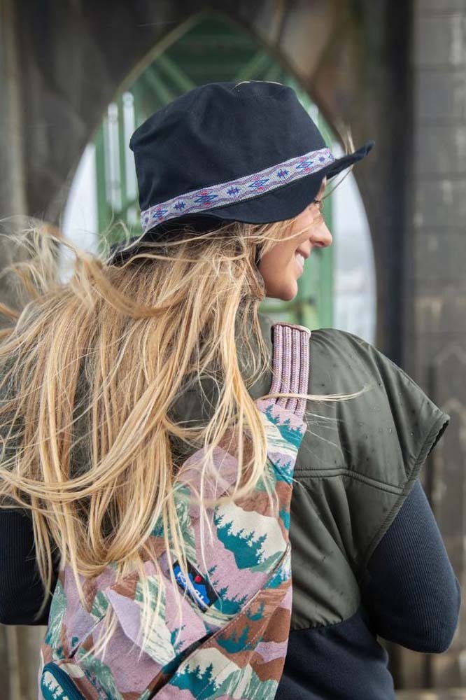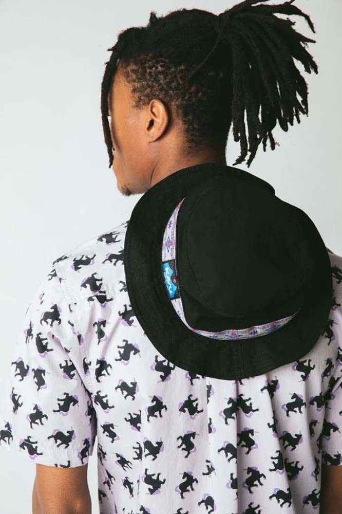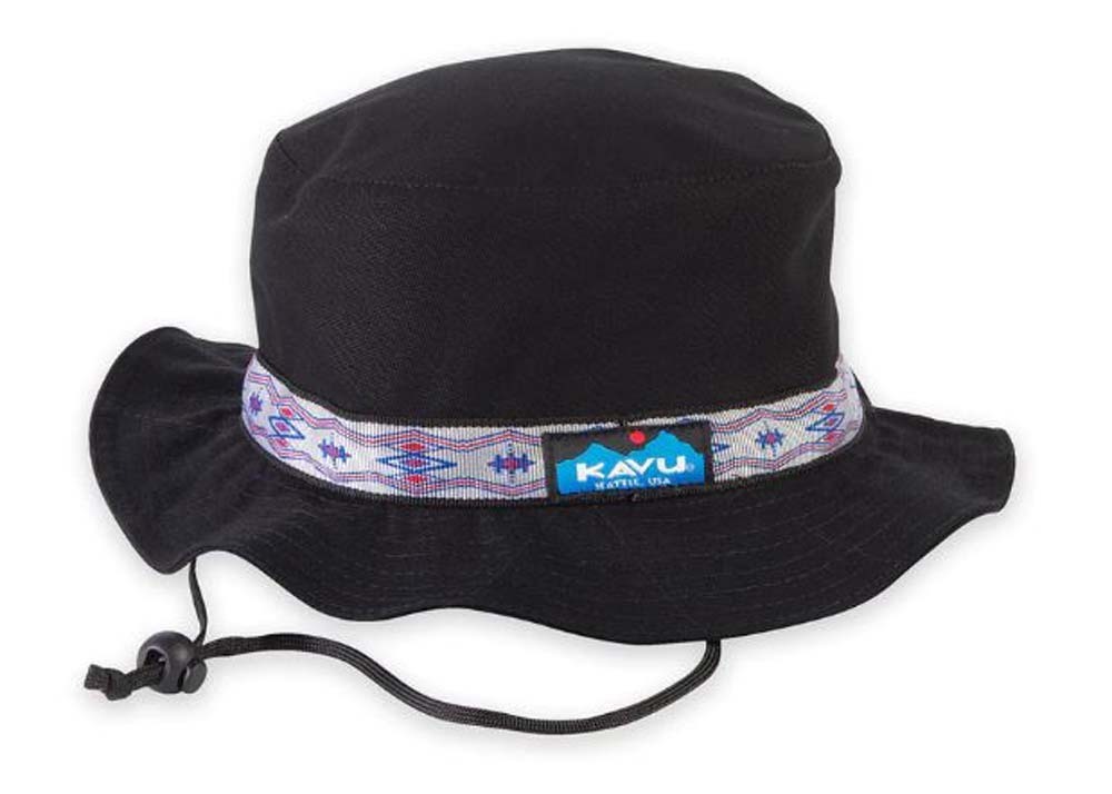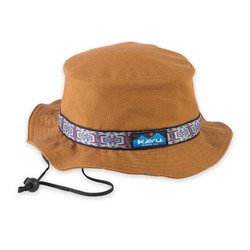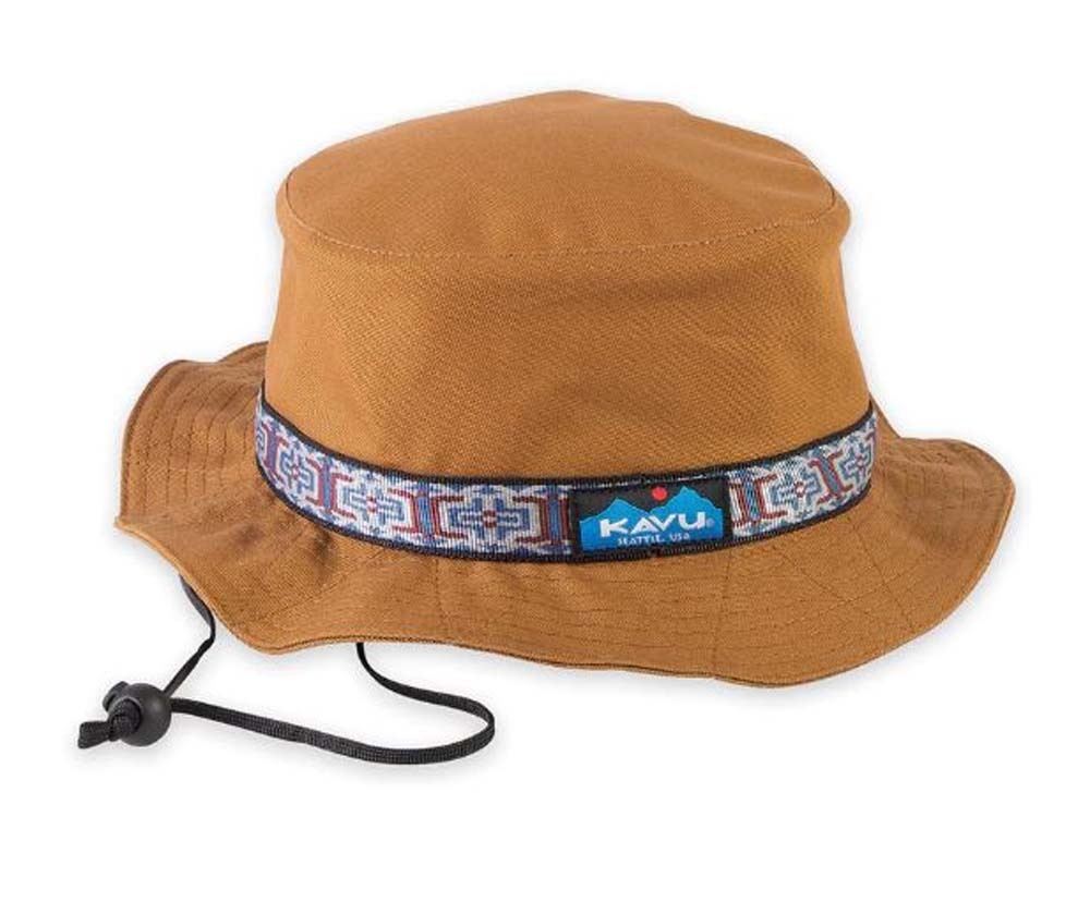 Decades ago the Strap Bucket debuted as an original KAVU special. As the years passed it sadly disappeared from our main product line. But, did you know that all this time the Strap Bucket was living a double life as a top seller in our Japan licensed line? Word got out and now the heritage Strap Bucket is back! Still with the same beefy core canvas, heritage patterned tubular webbing, but better than ever in certified organic cotton canvas. Organic cotton canvas bucket hat, adjustable chinstrap with cord lock, floppy brim, patterned nylon tubular webbing, interior moisture absorbing sweatband.