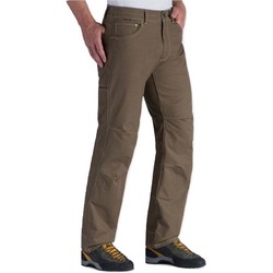 The KUHL RYDR PANT is cut from our exclusive combed Cotton Euro Twill for tenacious, yet luxurious, style. The fabric has been slightly brushed for a softer feel, but tough durability remains. Our FULL FIT features a full seat and thigh for a more relaxed fit. KUHL' Born Free gusseted crotch and articulated knees allow freedom of movement, while the original yoke system and anatomically engineered fit follow your body' natural contours for superior comfort. Double needle bar tacks add reinforcement at critical junctions, and reinforced pockets and bottom cuffs reduce wear. KUHL' signature cell phone pocket keeps your phone out of the way and easy to retrieve. River wash treatment creates a weathered, lived-in; look; made to fade.