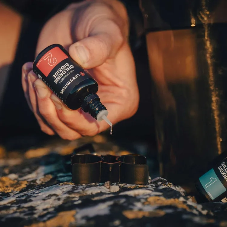 Reliable, safe, and powerful - Lifesystems Chlorine Dioxide Drops provide advanced water purification in the most demanding environments. This two-part system kills bacteria, viruses, and waterborne cysts like Giardia and Cryptosporidium, without leaving behind the strong aftertaste typical of chlorine treatments. Ideal for international travel, hiking, or emergency prep.