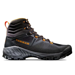 The Sapuen High GTX is the right choice on all kinds of terrain. Mammut Flextron© technology supports the natural rolling movement of the foot and thus more efficient use of energy when hiking and mountaineering, while Mammut Georganic© 3D technology guarantees maximum comfort. All components in contact with the foot are anatomically shaped with great precision while the classic tongue construction offers easy entry. Optimized for hiking: a Vibram rubber blend for secure grip on outdoor surfaces and a sole design that supports self-cleaning. The waterproof GORE-TEX membrane guarantees dry feet.