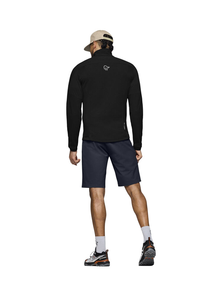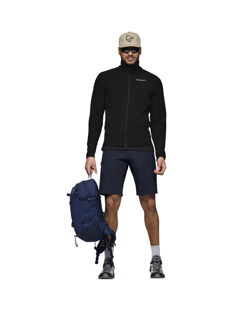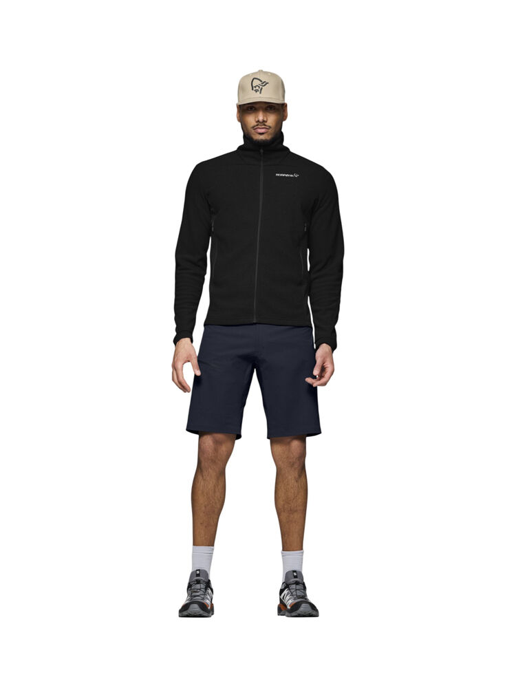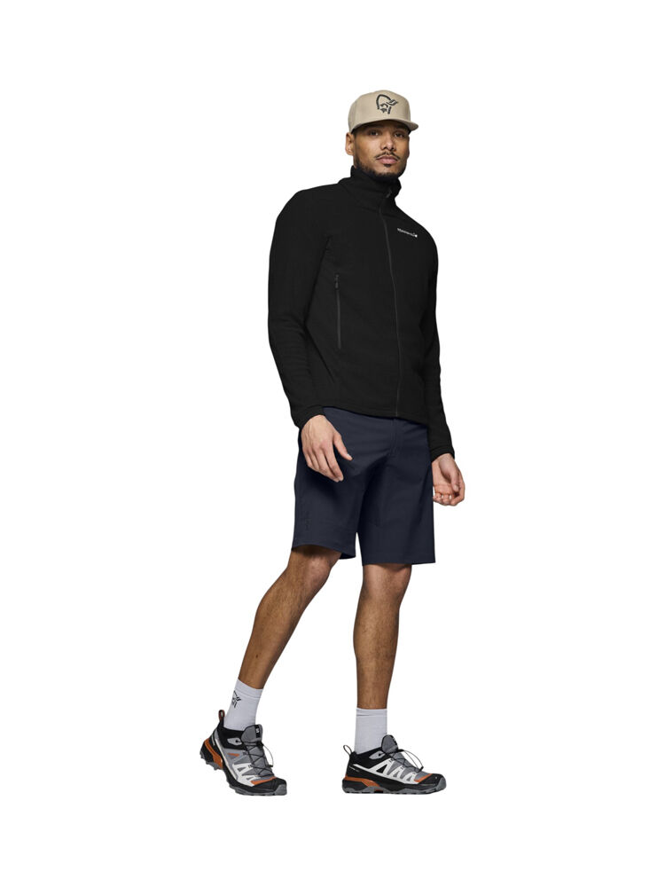 A versatile and classic midlayer jacket. This comfortable fleece jacket is made for all-year mountaineering but works perfectly for general outdoor activities ranging from trekking to ski touring. The jacket is made in our highly breathable and insulating warm1 fabric, our lightest fleece quality, and among the best on the market. Weighing 207 g/m2, this high-quality recycled polyester is an excellent lightweight all-around fabric with great thermal properties. Its unique constructions trap warm air without stopping moisture transport, and the fabrics are open enough to allow air to circulate. To give extra movability, stretch and less bulk we have a Polartec Power grid, 139 g/m2, 97% polyester, 3% elastane in the side of the body and under the arms. Key features include: Integrated wrist gaiters, side panels in Power Stretch for a better fit, a high collar, elastic cuffs with thumbholes, and hand warming pockets. The jacket has a regular fit with a Y-cut and articulated arms for good movement while climbing.