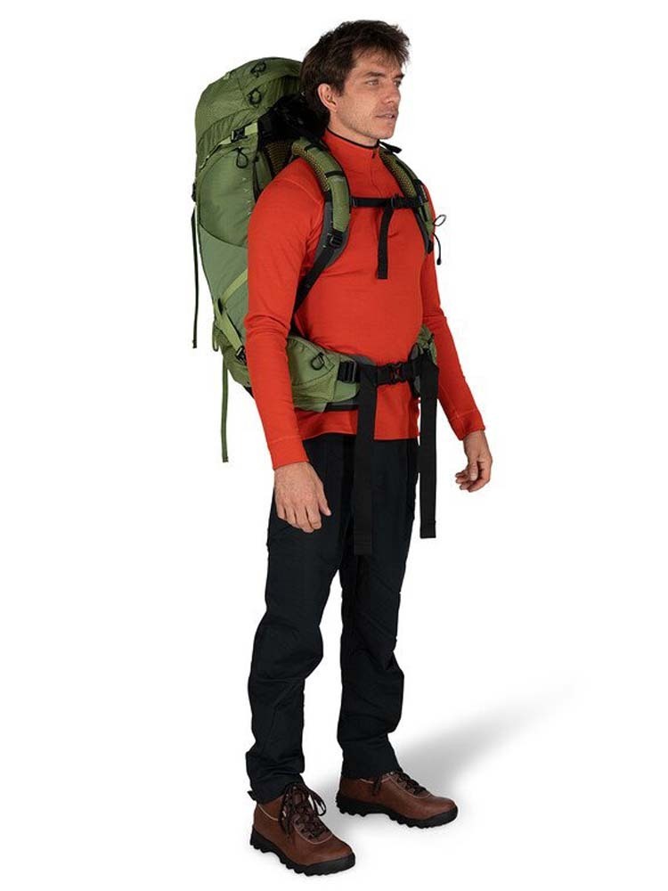 For weekends backpacking and lighter-weight multiday-overnight trips where comfort and ventilation are paramount, you can't find a better pack than the Atmos AG 50. AntiGravity suspension delivers a weight-defying fit that seamlessly envelopes your back and hips in 3D-suspended mesh, leaving you wondering where all that weight you packed went. Your water bottles fit snugly in the easy-to-use stretch mesh side pockets, an internal reservoir sleeve extends your hydration options and a Stow-on-the-Go trekking pole attachment gets your gear out of the way when you need both hands free. If the weather happens to turn, turn to the integrated raincover to keep things dry. Don't compromise - enjoy a world class backpacking pack on your next big adventure. Made with recycled main, accent and bottom fabrics.