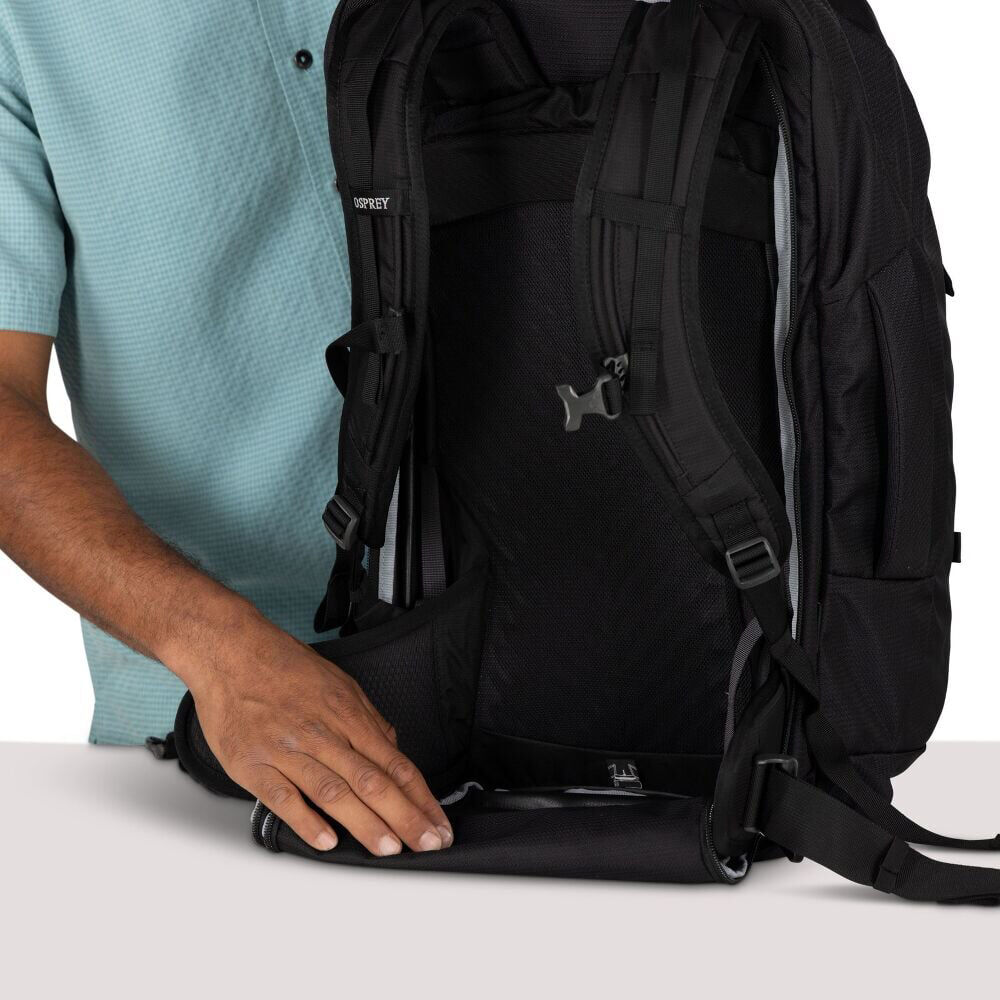 Stowaway Harness and Hipbelt: Backpack suspension stows away for safekeeping while traveling and deploys quickly for any path or trail.