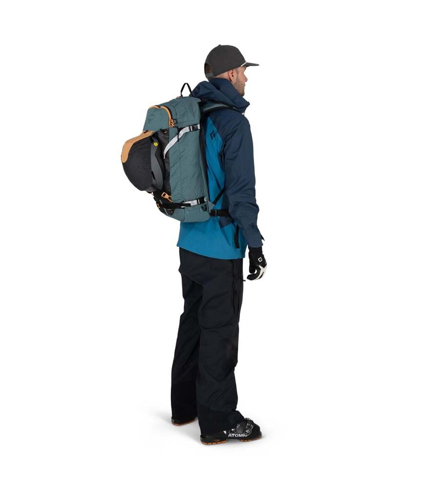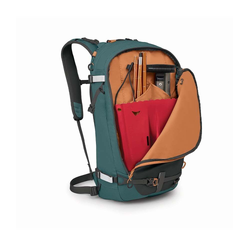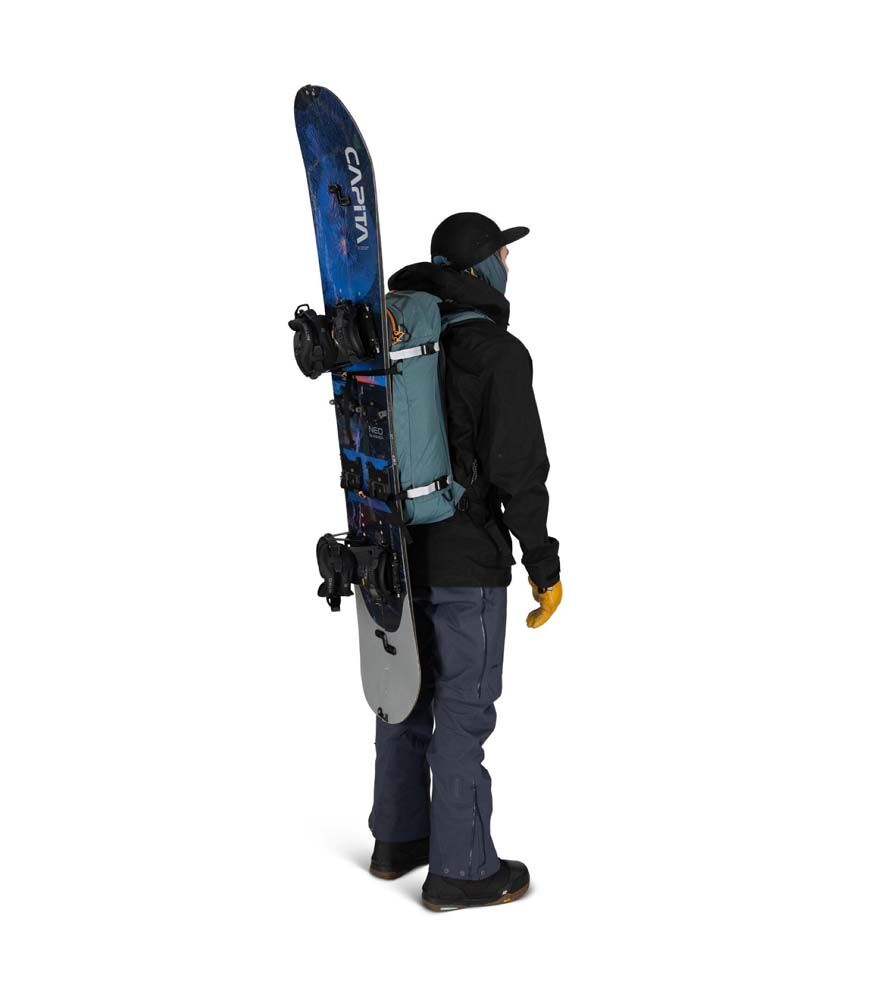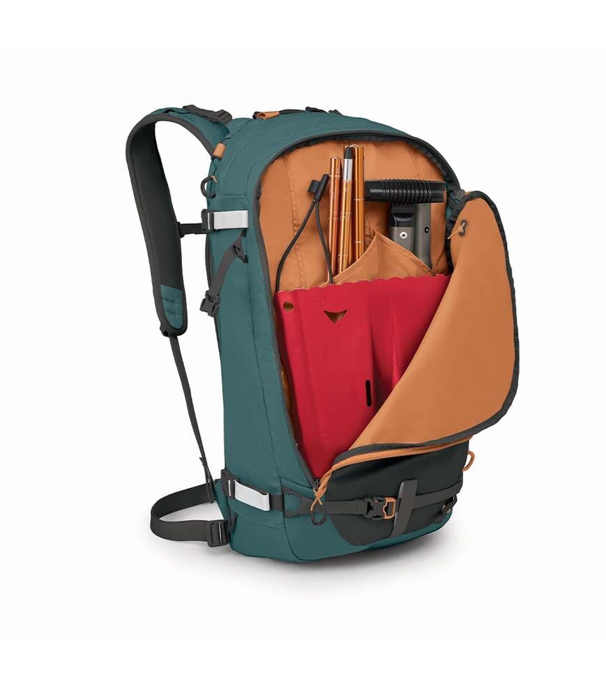 Snow-Specific Features: Equipped with a snow-shed backpanel, diagonal and A-frame ski carry, snowboard carry, ice tool attachment and intuitive access to safety avalanche gear.