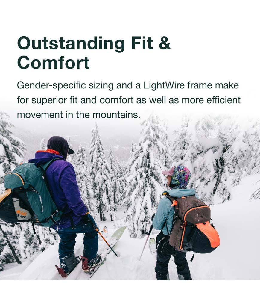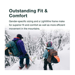 Outstanding Fit and Comfort: Gender-specific sizing and a LightWire frame make for superior fit and comfort as well as more efficient movement in the mountains.