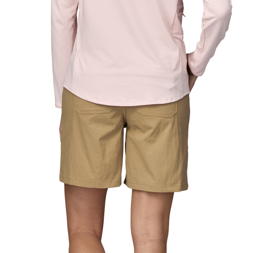 These lightweight hiking shorts with a 7" inseam are made of stretch-woven 95% nylon (65% recycled)/5% spandex with a DWR (durable water repellent) finish. Also available in a 5" inseam.