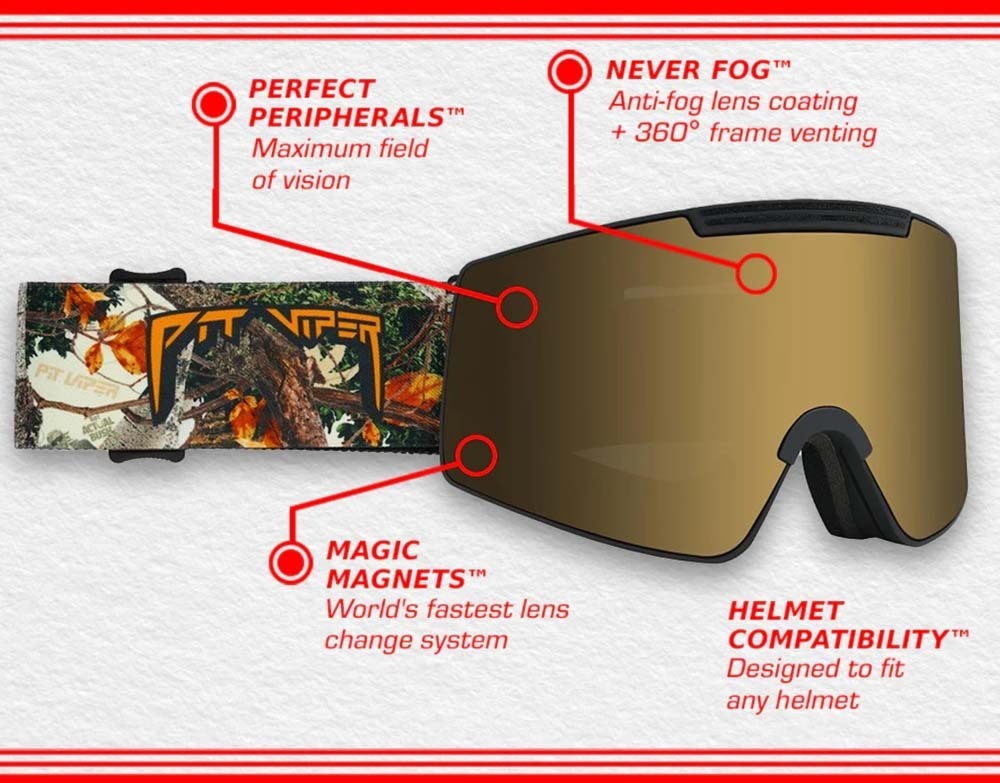 Meet the Proform Goggle, the biggest, clearest, most innovativist goggle on the mountain. Magic Magnets make for fast, easy lens swaps, while the Hyperventilator ensures maximum airflow for a fog-free view, so you're ready for any condition.
