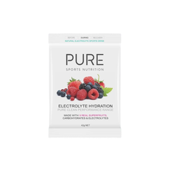 PURE Electrolyte Hydration is a premium natural electrolyte drink base using real fruit, carbohydrates and electrolytes. PURE Electrolyte Hydration is a natural isotonic sports drink powder. When you open a sachet of PURE Electrolyte Hydration the first thing you'll notice is the amazing smell of fresh fruit. Available in 4 great flavours: Raspberry, Pineapple, Lemon, Superfruits. (Superfruits contains: Acai, Goji, Pomegranate, Elderberry, Blackcurrant, Blueberry, Cranberry, Strawberry and Raspberries.) HYDRATION: Proper hydration is essential during exercise, when you are dehydrated, or unwell. When mixed with water to the correct amounts, PURE Electrolyte Hydration will assist with ensuring adequate fluid intake during exercise and to prevent or treat mild dehydration that may occur as a result of sustained strenuous exercise. ENERGY: Made with a specific blend of sucrose and glucose which helps with rapid replacement of energy, PURE Electrolyte Hydration is designed to promote the availability of energy during exercise. It's not sickly sweet so you can easily drink it at full strength. ELECTROLYTES: PURE Electrolyte Hydration is formulated with specific electrolytes for people who lead an active lifestyle, helping to replace electrolytes lost during sweating & exercise.