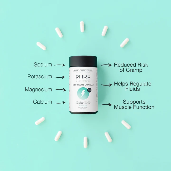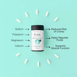 PURE Electrolyte Capsules contain the electrolytes sodium, magnesium, potassium and calcium, with added support from vitamin D3.