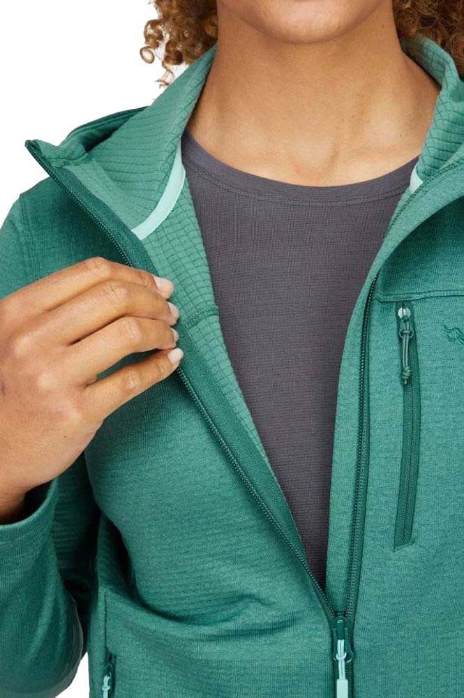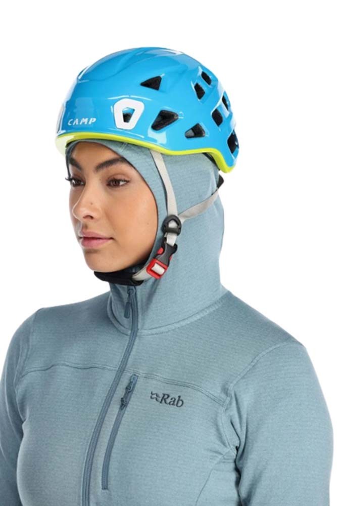 A staple midlayer for dedicated mountain goers. This midweight fleece hoody is made with 96% recycled Thermic G stretch fleece, providing warmth and breathability on hikes, scrambles, and mountaineering adventures. Providing warmth, breathability and fast wicking performance, the Graviton Hoody is a versatile mountain midlayer. With excellent stretch and set-in sleeves for complete mobility and a slim fit, it's ideal for layering on mountain ascents where climbing, ropes or a harness may be needed. It has an under-helmet hood for added warmth on exposed terrain, perfect for a windy ridge or plateau. The dropped hem at the back neatly covers over the back of the hips for a seamless fit under a harness. Packable, warm and temperature regulating, the Graviton Hoody is ideal for all mountain adventures.